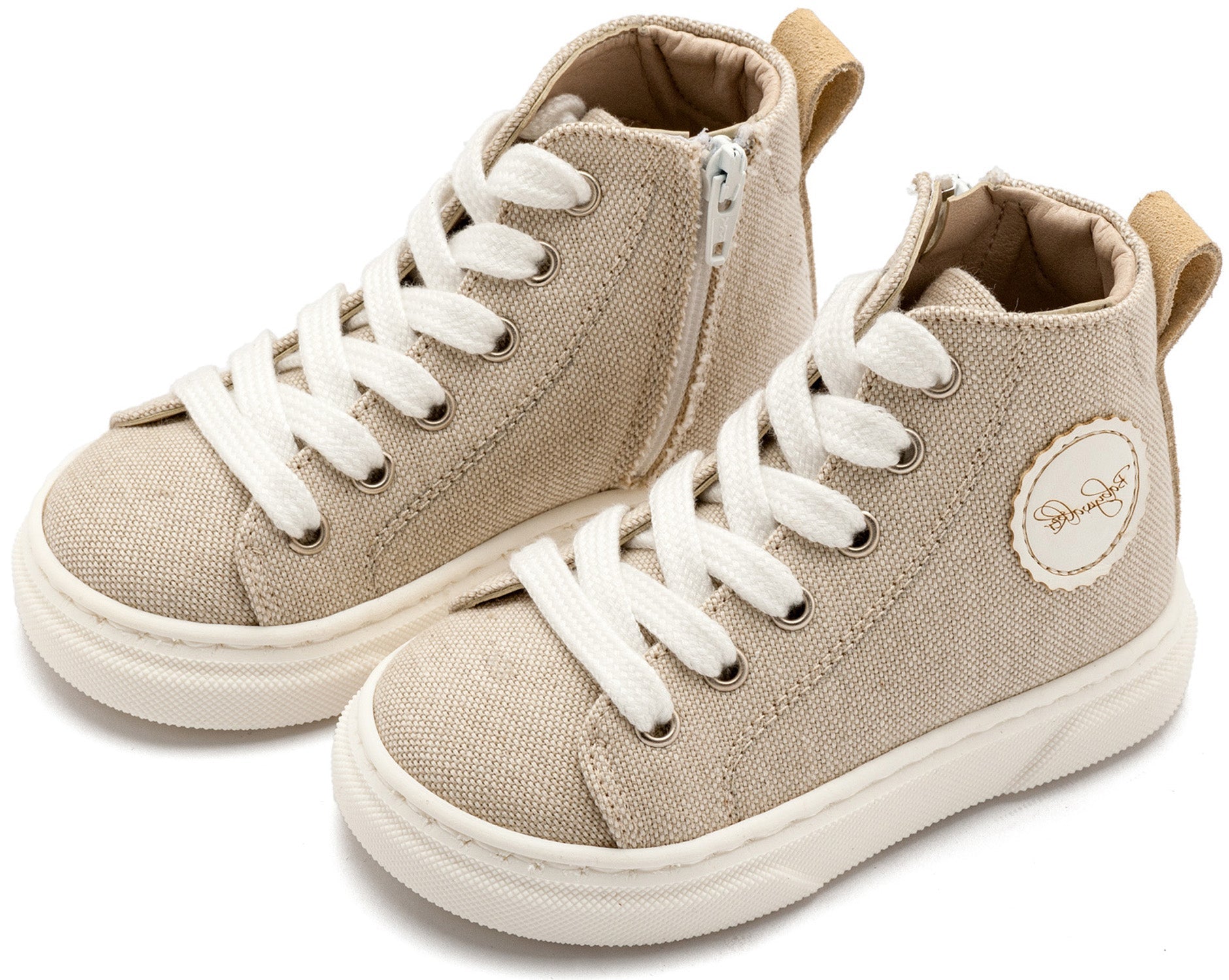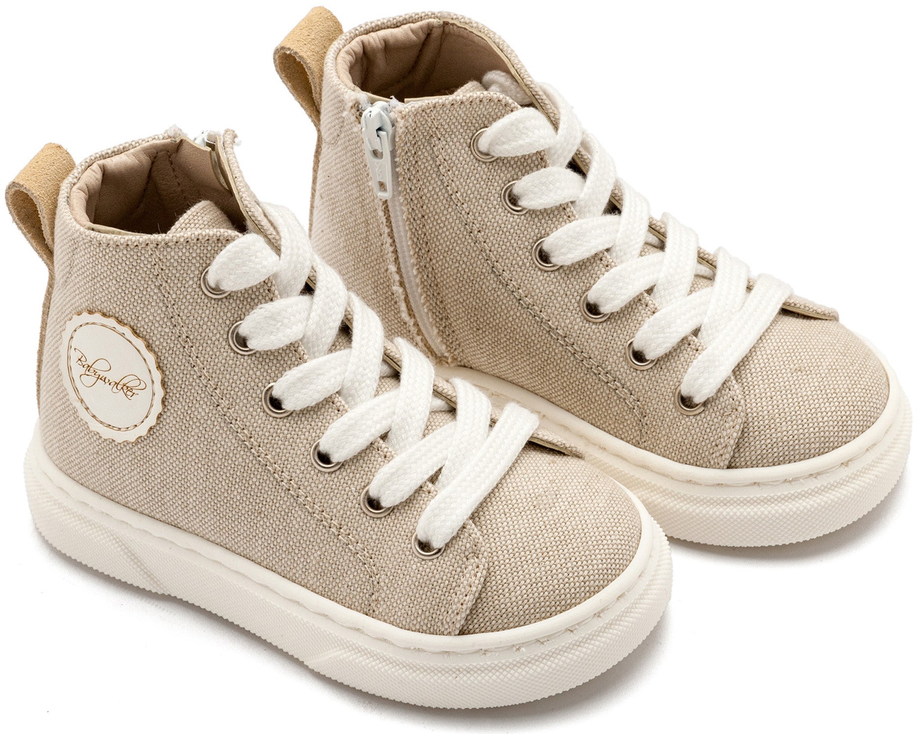 Υφασμάτινο Δετό Μποτάκι Sneaker με Φερμουάρ στο Πλάι σε Μπεζ Χρώμα