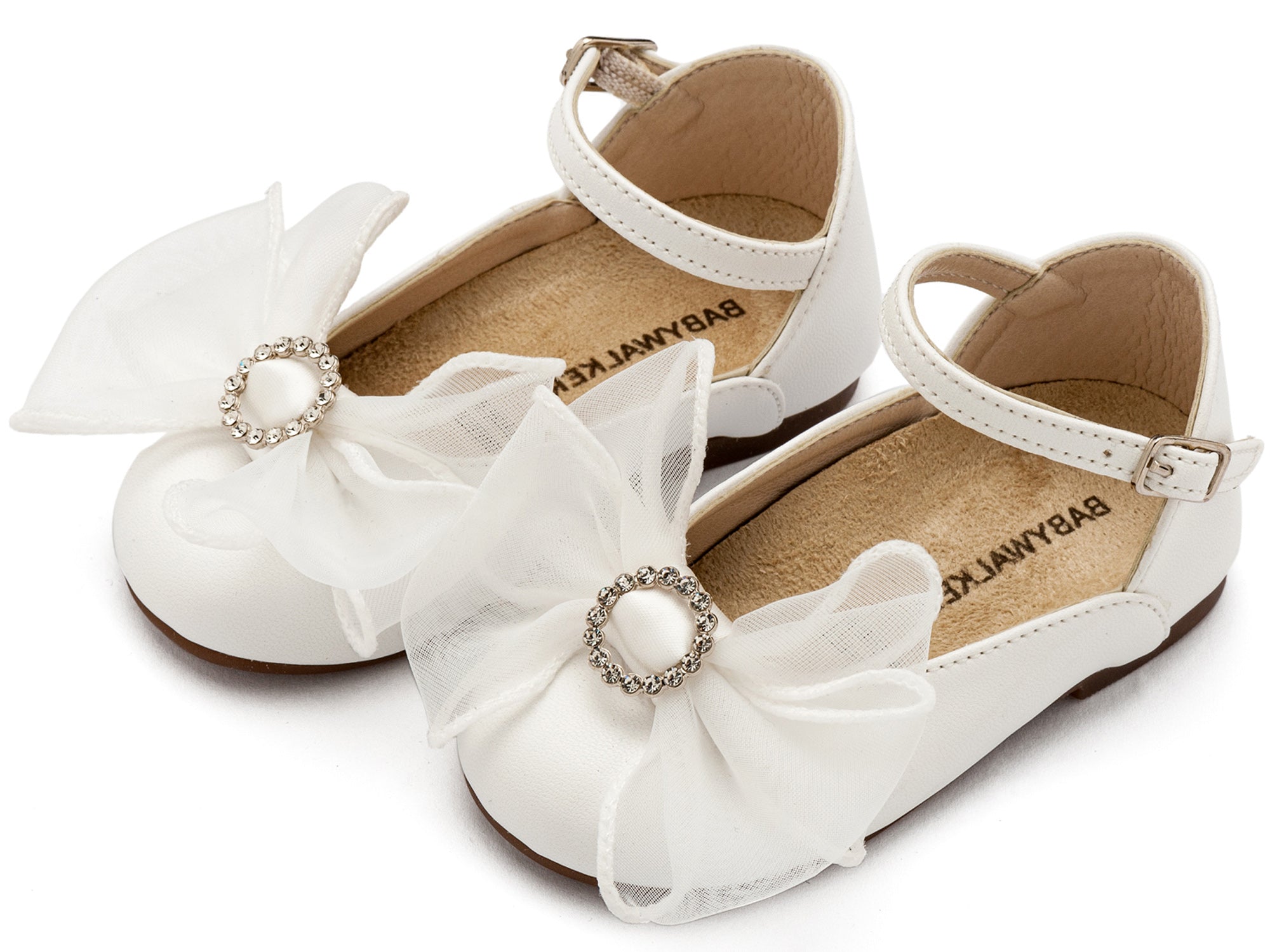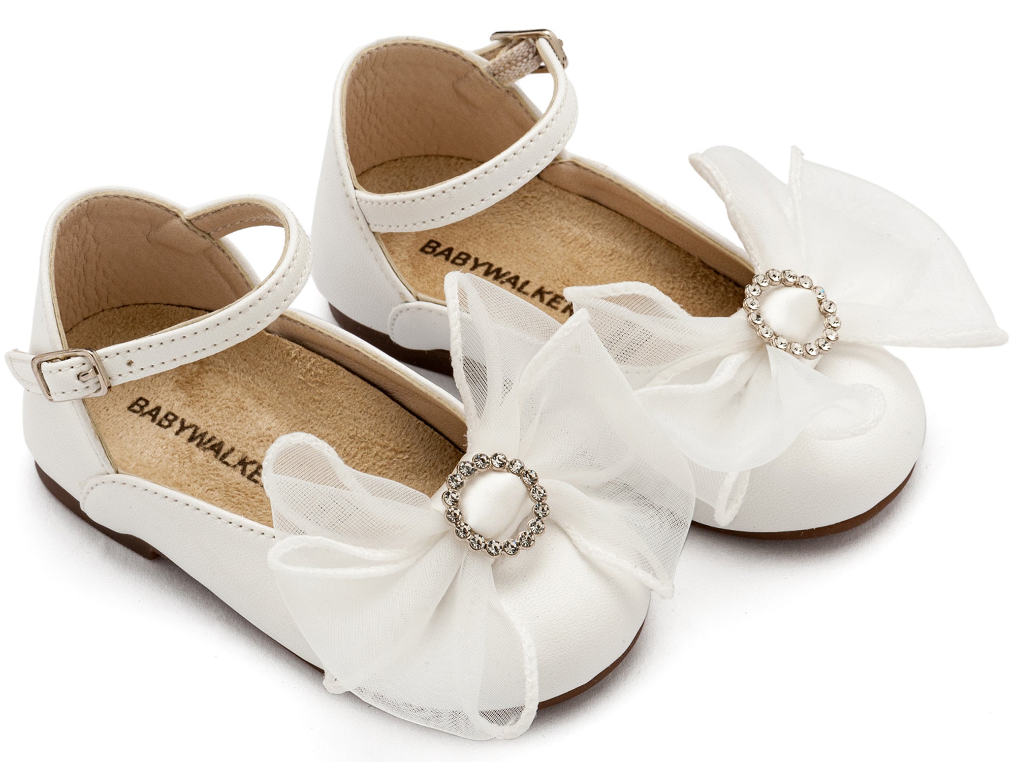 Γαλλικό Γοβάκι με Φιόγκο Οργάντζας και Στρασένια Τόκα σε Λευκό Χρώμα