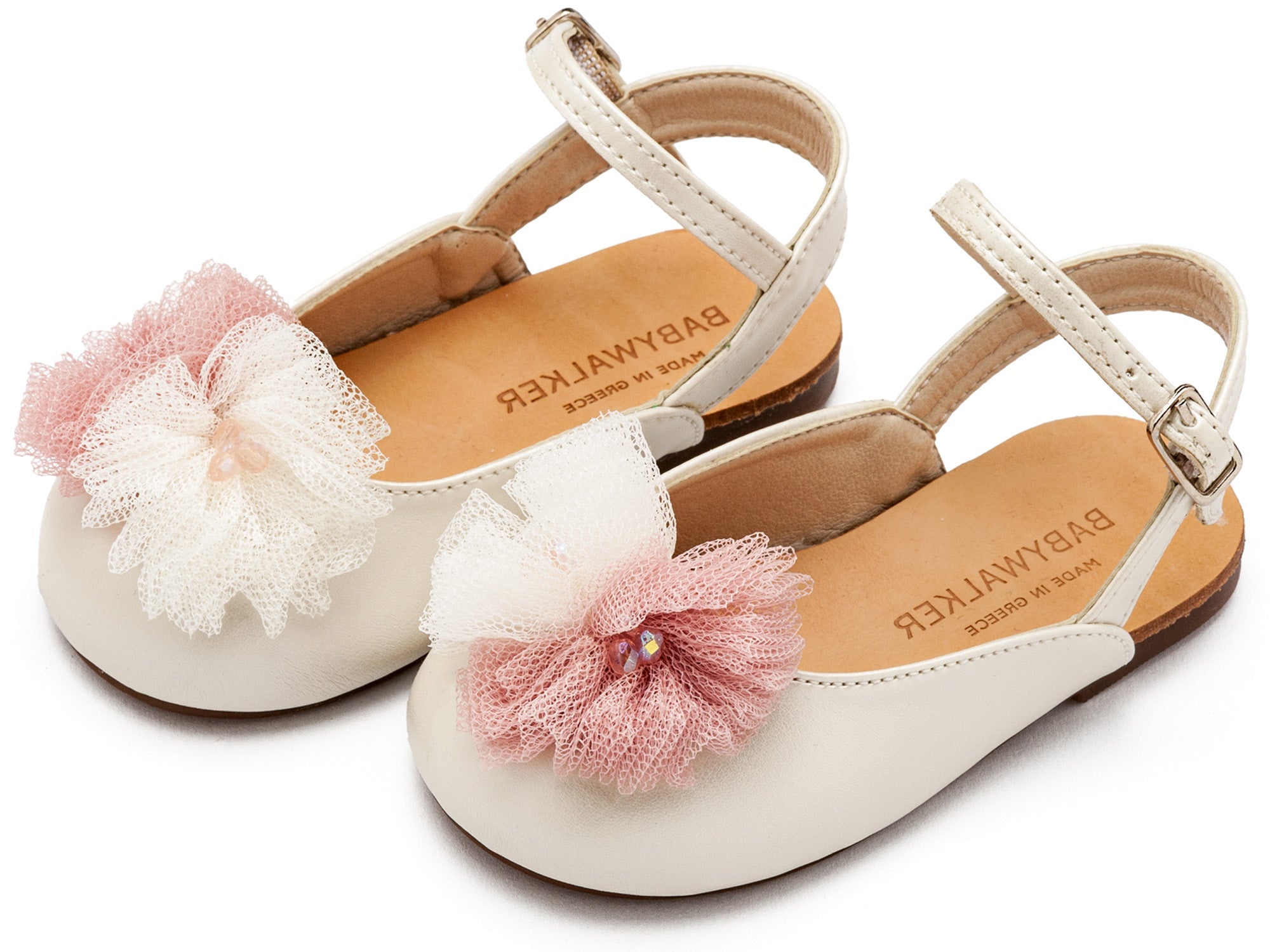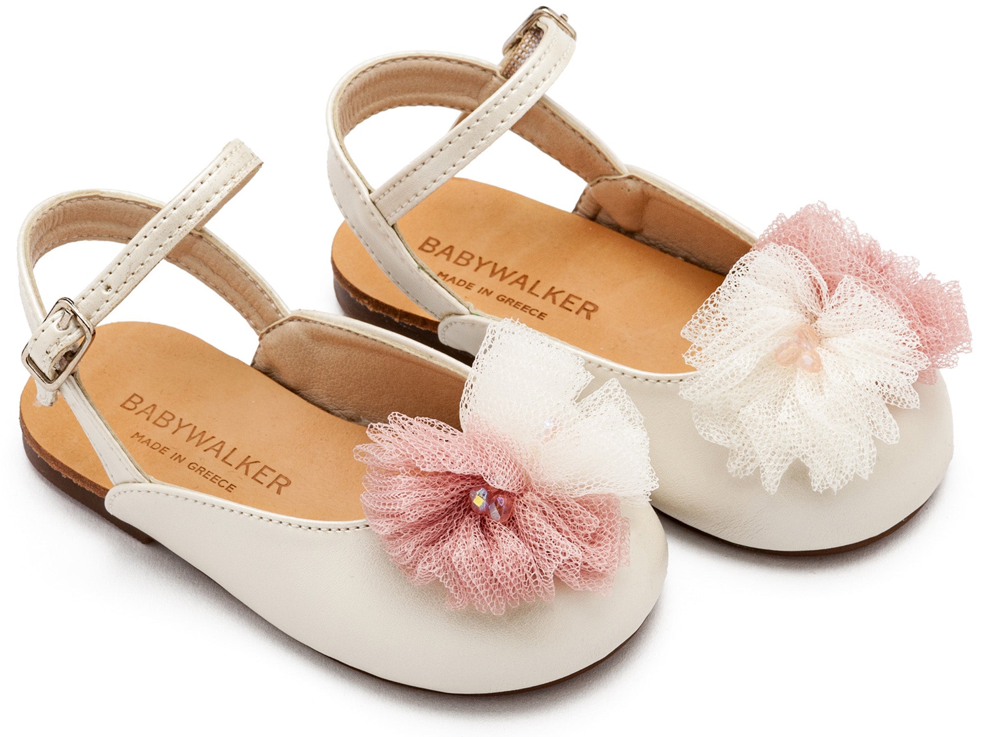 Γαλλικό Σαμπό με Χειροποίητο Διακοσμητικό απο Τούλι σε Εκρού Ροζ Χρώμα