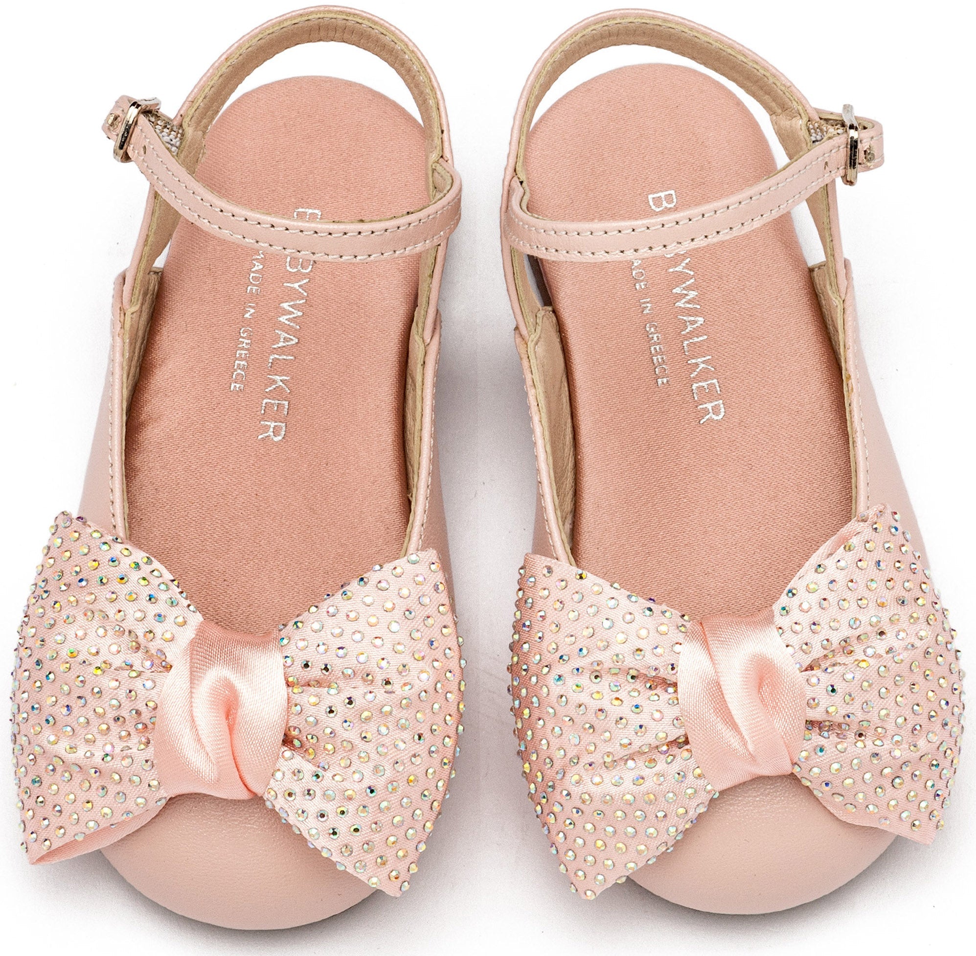 Γαλλικό Δερμάτινο Σαμπό με Μεγάλο Φιόγκο Στρας σε Ροζ Χρώμα