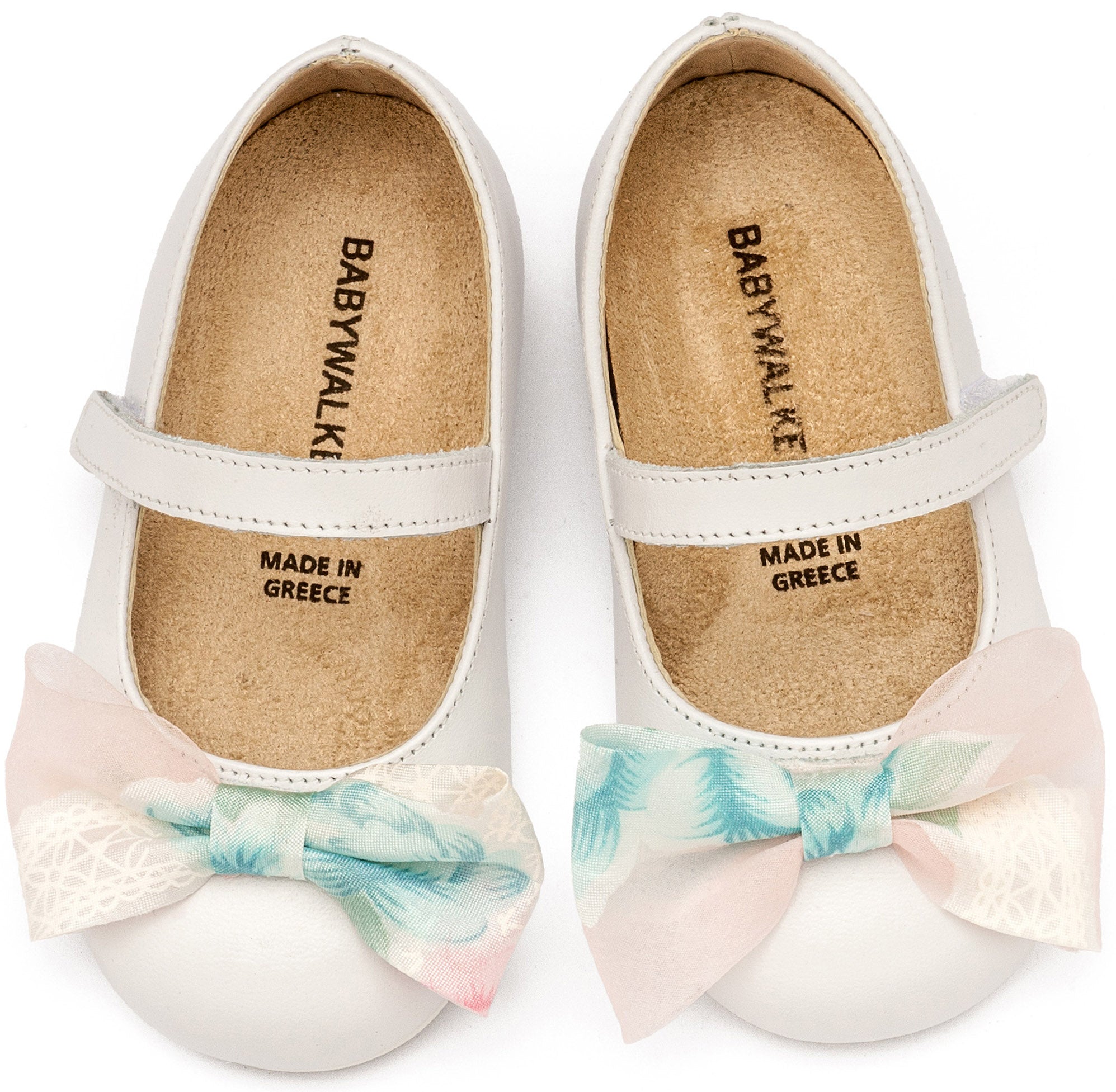 Δερμάτινο Γοβάκι Μονή Μπαρέτα Χρατς με Σατέν Χειροποίητο Φιογκάκι σε Φλοράλ Χρώμα