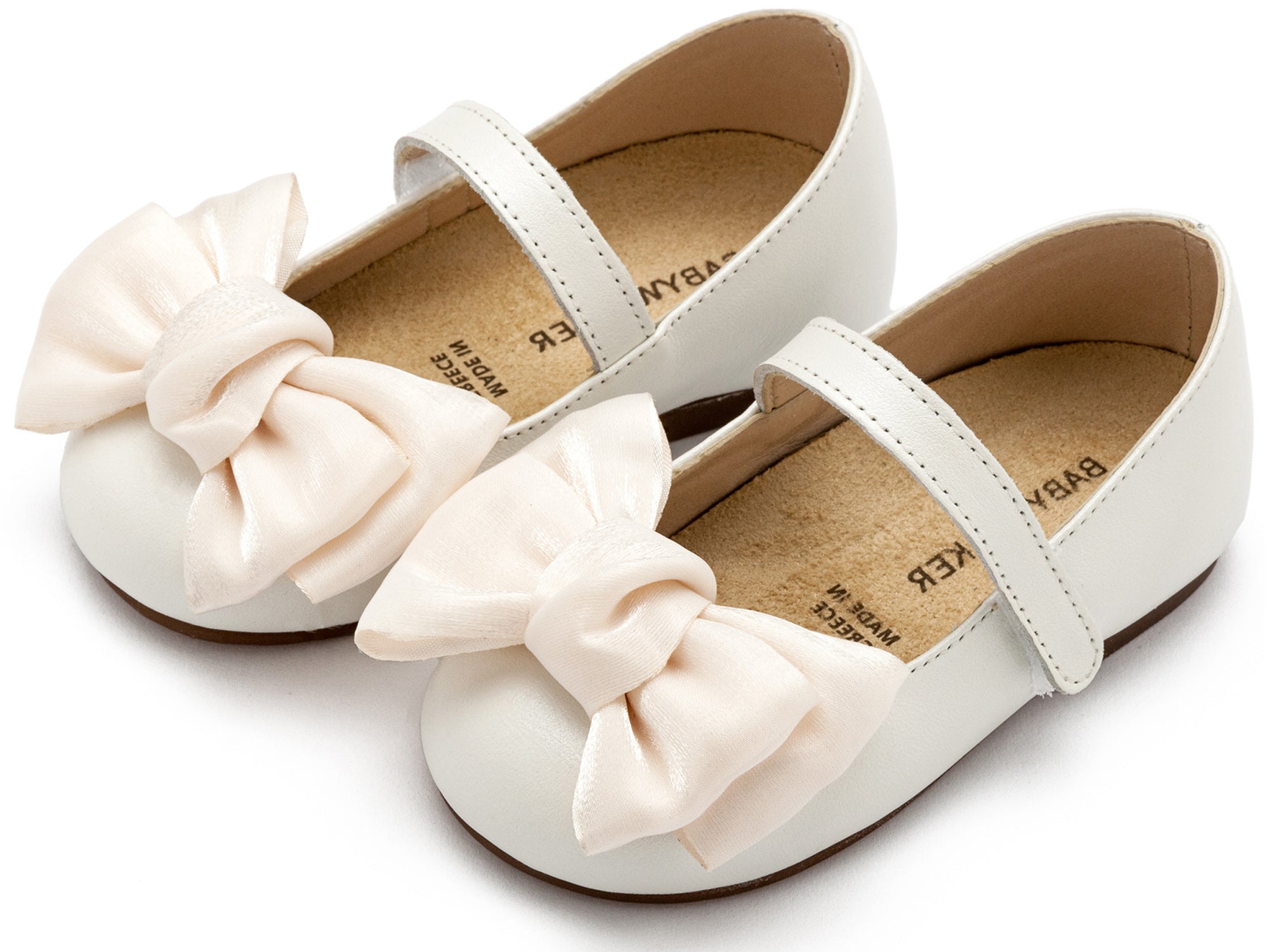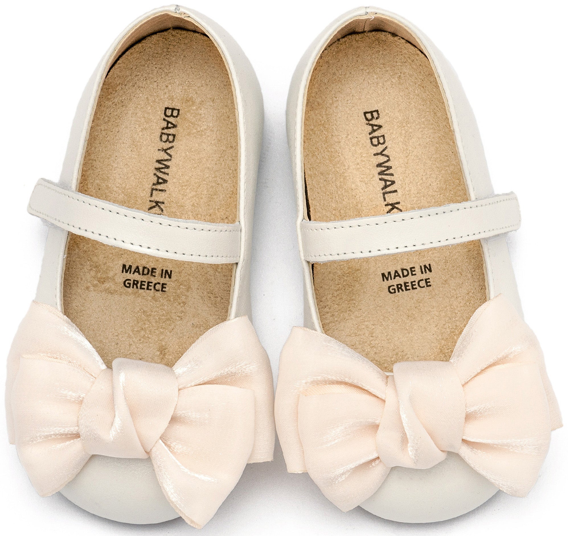 Δερμάτινο Γοβάκι Μονή Μπαρέτα Χρατς με Υφασμάτινο Φιόγκο Οργάντζας σε Εκρού Χρώμα