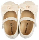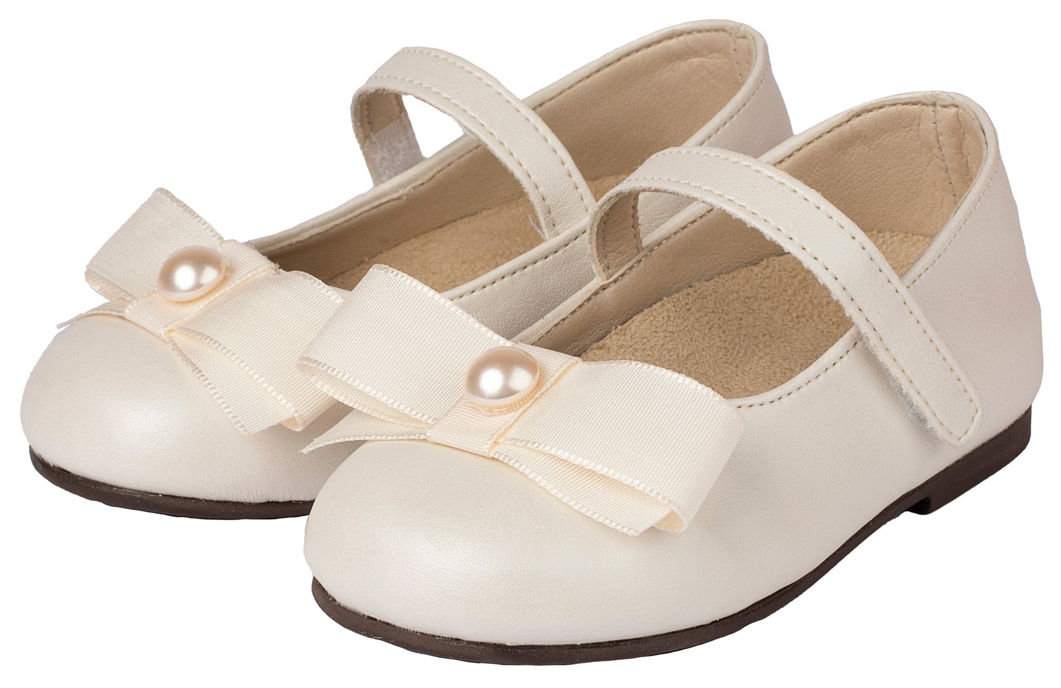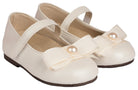 Δερμάτινο Γοβάκι Μονή Μπαρέτα με Ταφταδένιο Φιόγκο από Συνθετικό Δέρμα σε Εκρού χρώμα