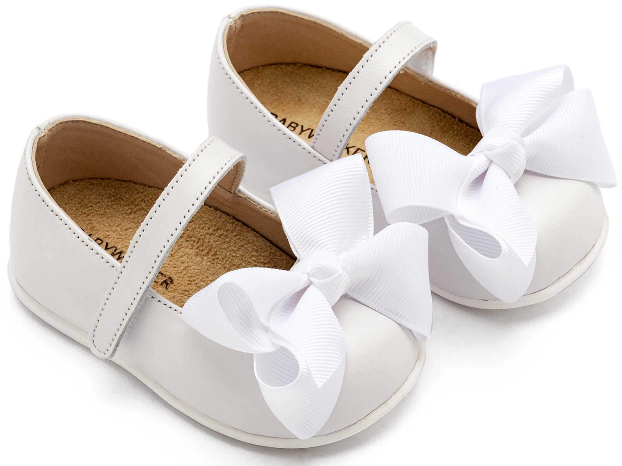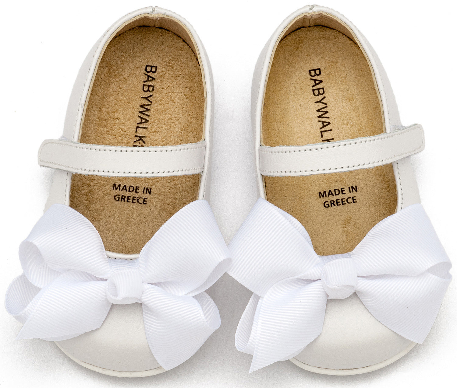 Δερμάτινο Γοβακι Μονή Μπαρέτα με Φιόγκο Gros-Grain από Δέρμα Νάπα σε Λευκό Χρώμα