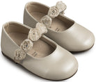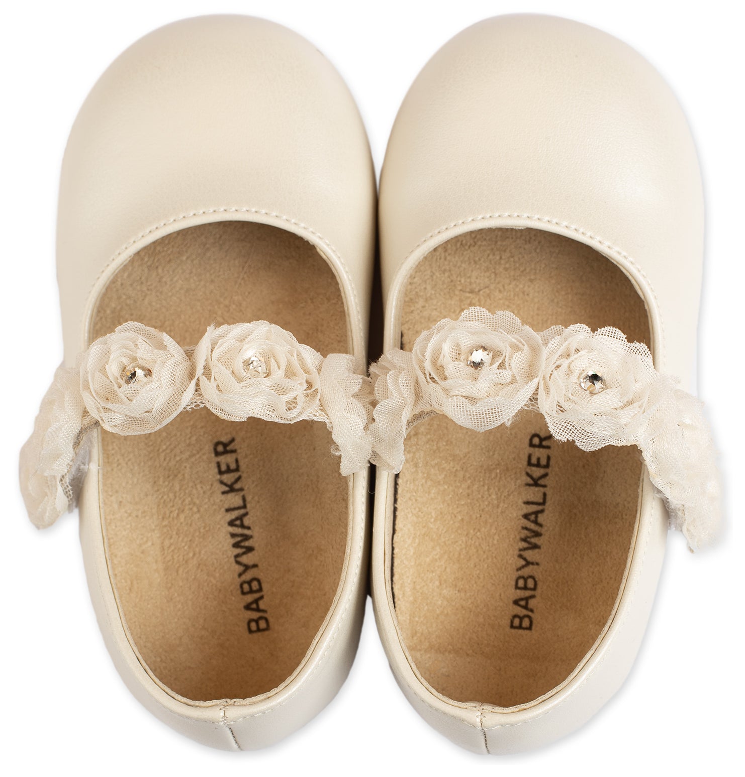 Δερμάτινο Γοβάκι Μονή Μπαρέτα με Chiffon Λουλούδια από Συνθετικό Δέρμα σε Εκρού χρώμα