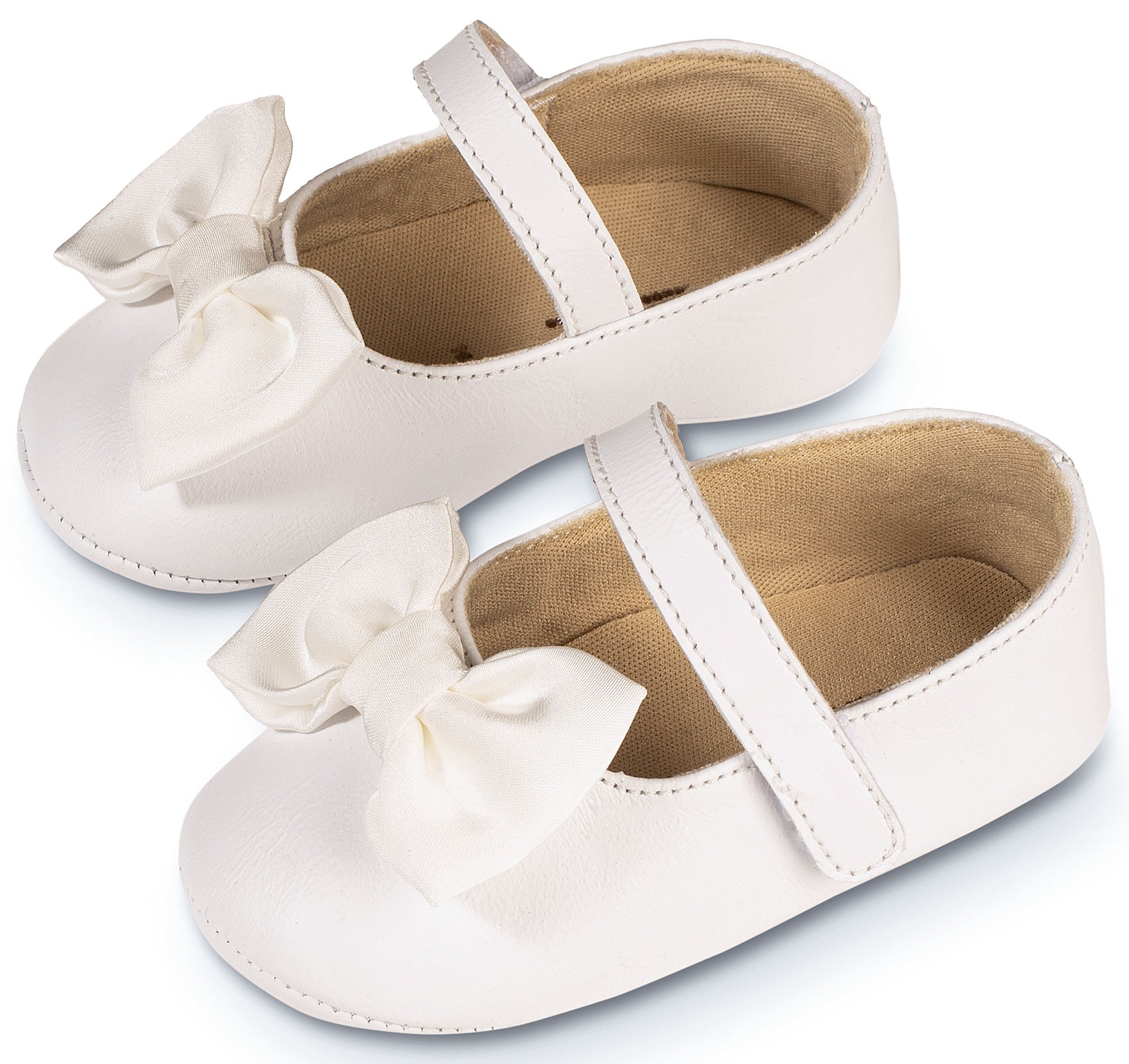 Δερμάτινο Γοβάκι Μονή Μπαρέτα με Υφασμάτινο Χειροποίητο Φιογκάκι σε Λευκό Χρώμα