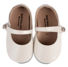 Γοβάκι Μονή Μπαρέτα με Στρασένιο Κουμπάκι σε Εκρού Χρώμα