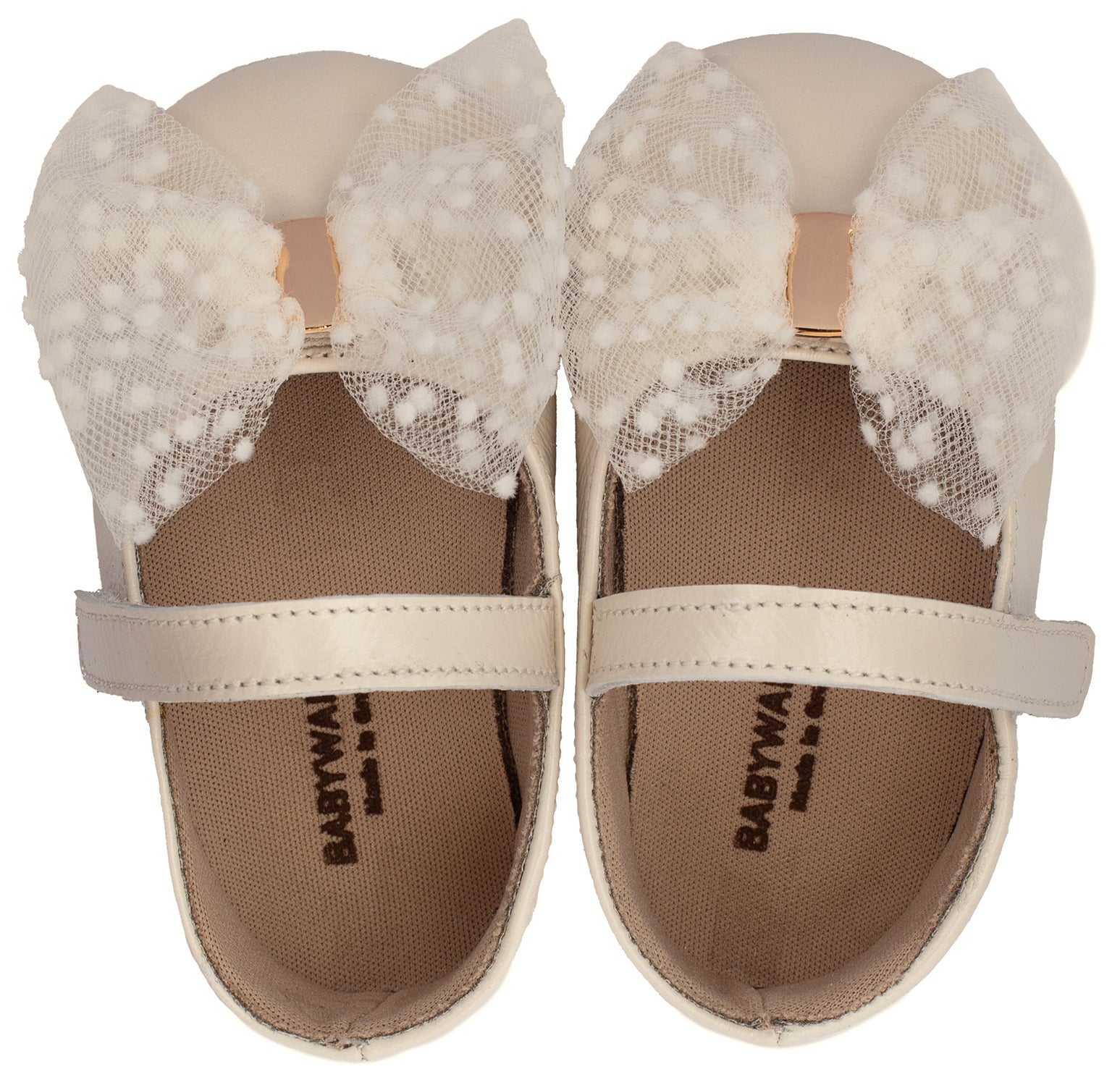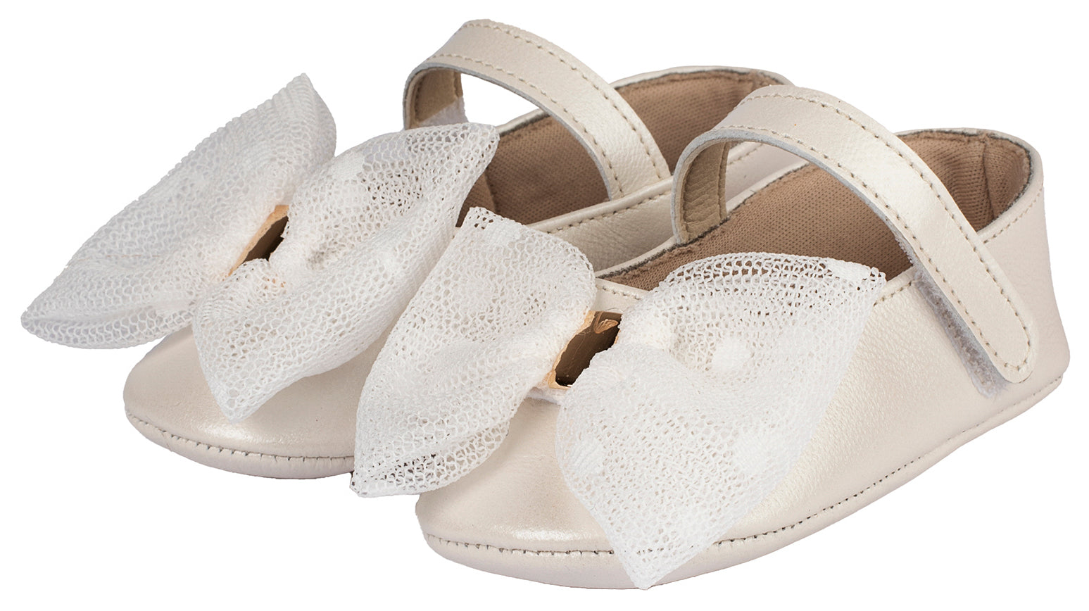Δερμάτινη Μπαλαρίνα με Τούλινο Φιόγκο σε Εκρού Χρώμα