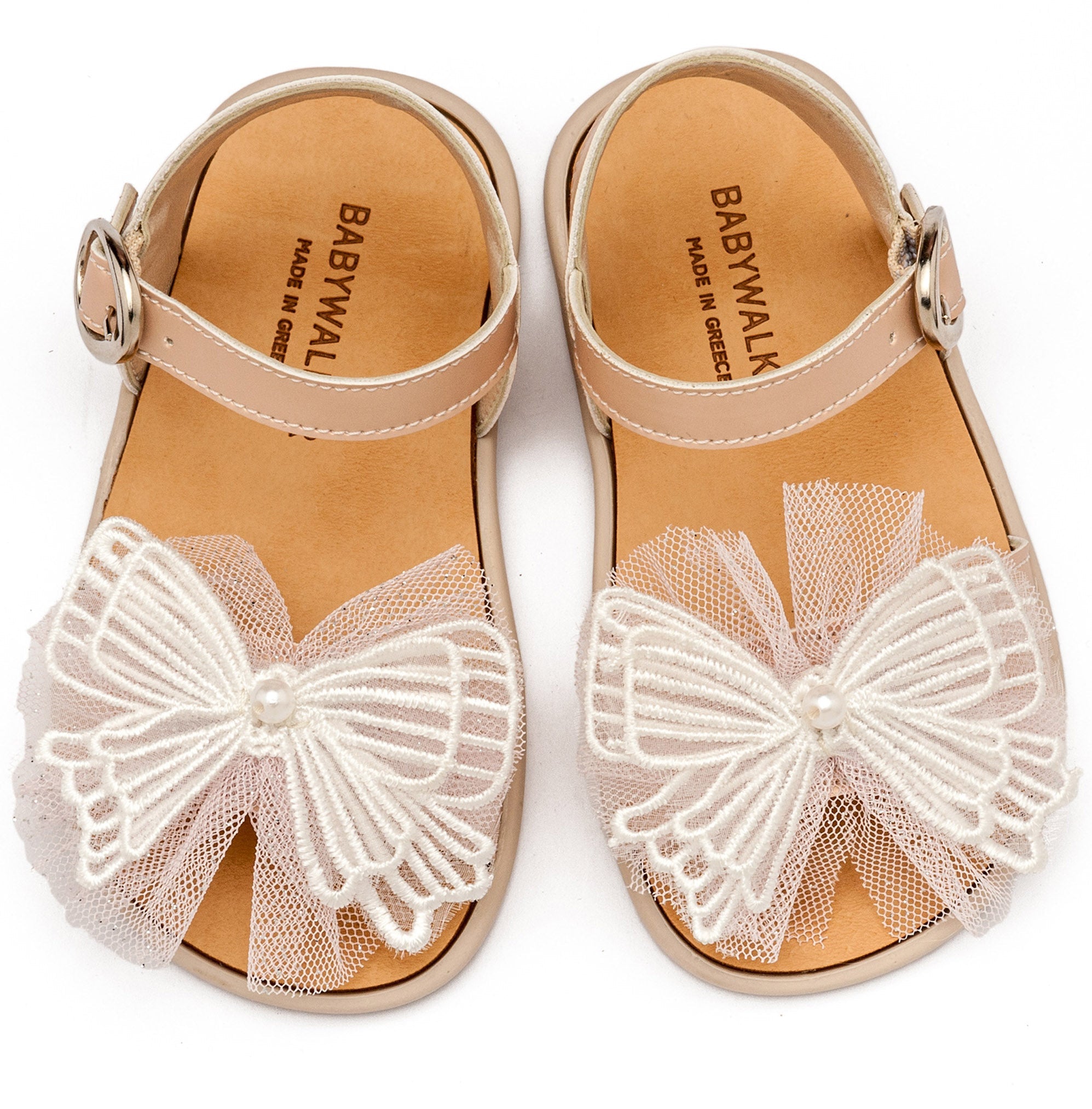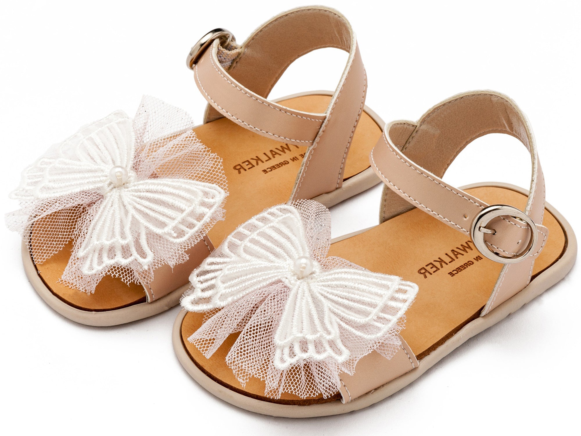 Πέδιλο με Χειροποίητο Διακοσμητικό Πεταλούδα σε Nude Χρώμα