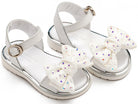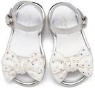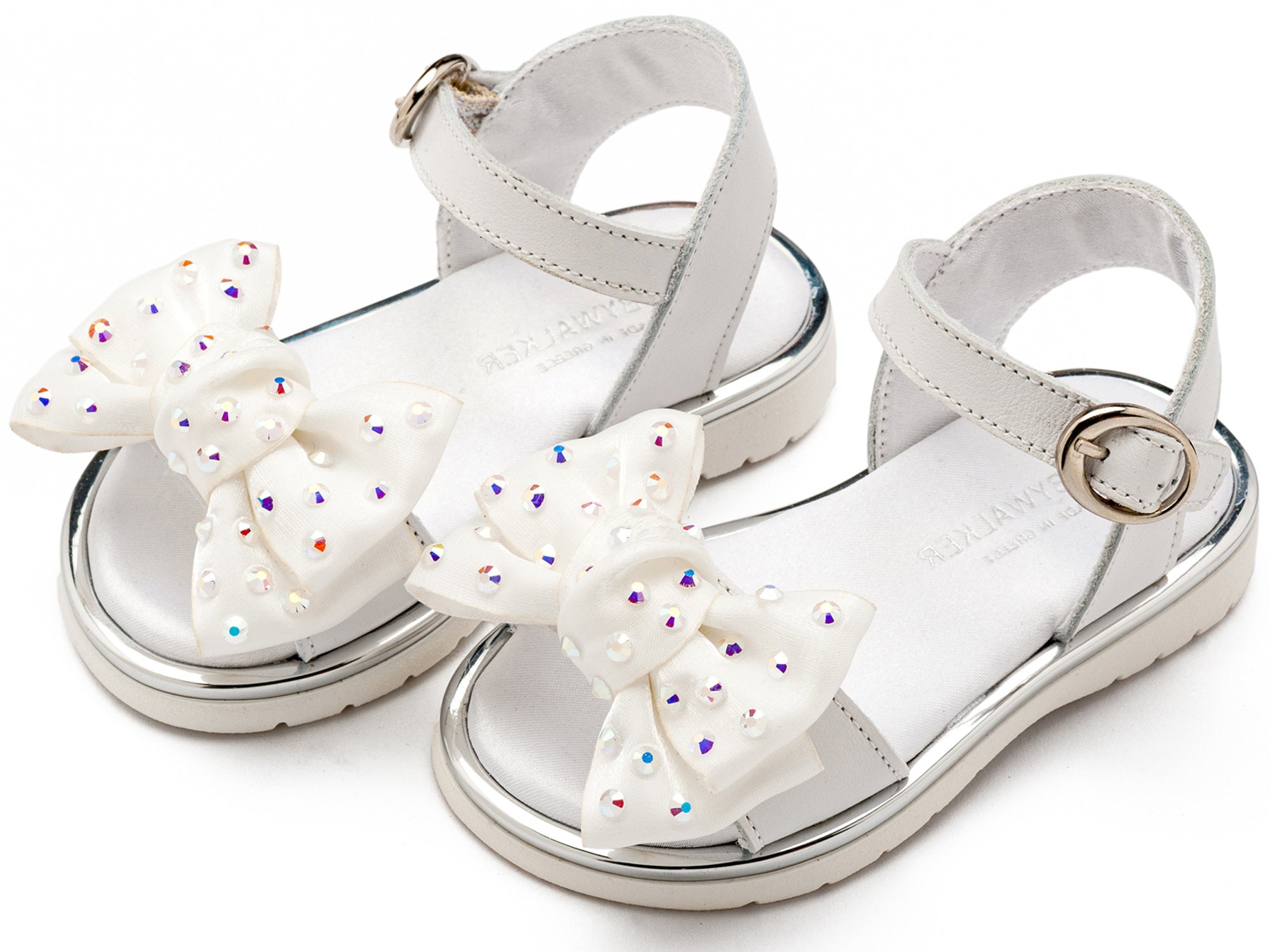 Δερμάτινο Πέδιλο με Φιόγκο Οργάντζας και Στρας Swarovski σε Λευκό Χρώμα