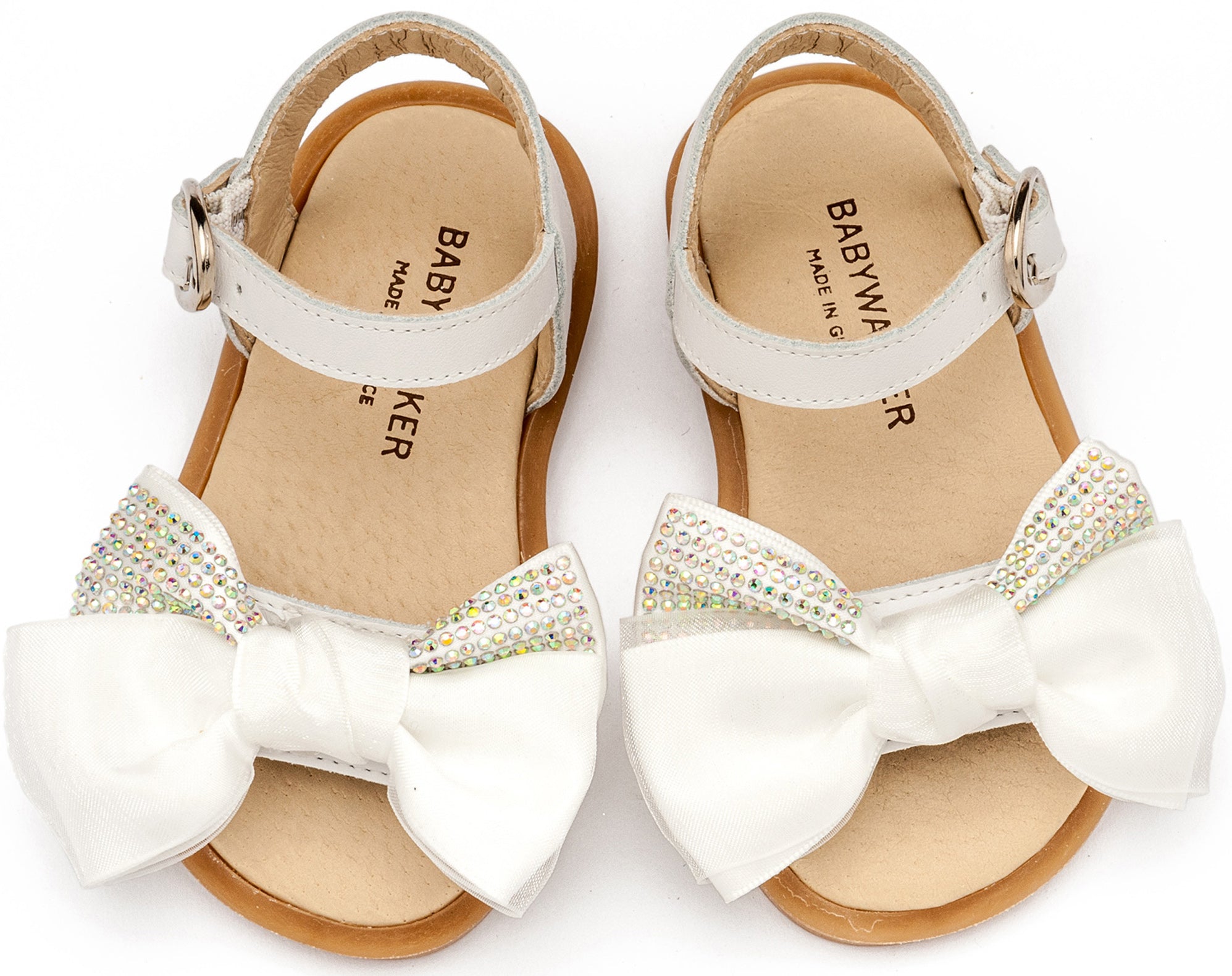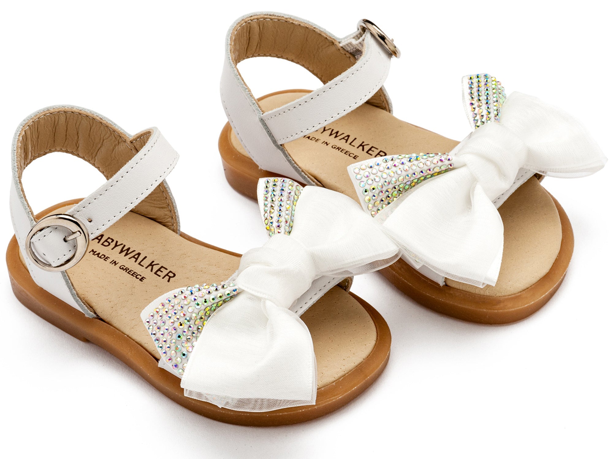 Δερμάτινο Πέδιλο με Σατέν Φιογκάκι & Στρας σε Λευκό Χρώμα