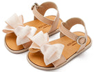 Πέδιλο Διακοσμημένο με Μεγάλο Υφασμάτινο Φιόγκο από Συνθετικό Δέρμα σε Nude Χρώμα