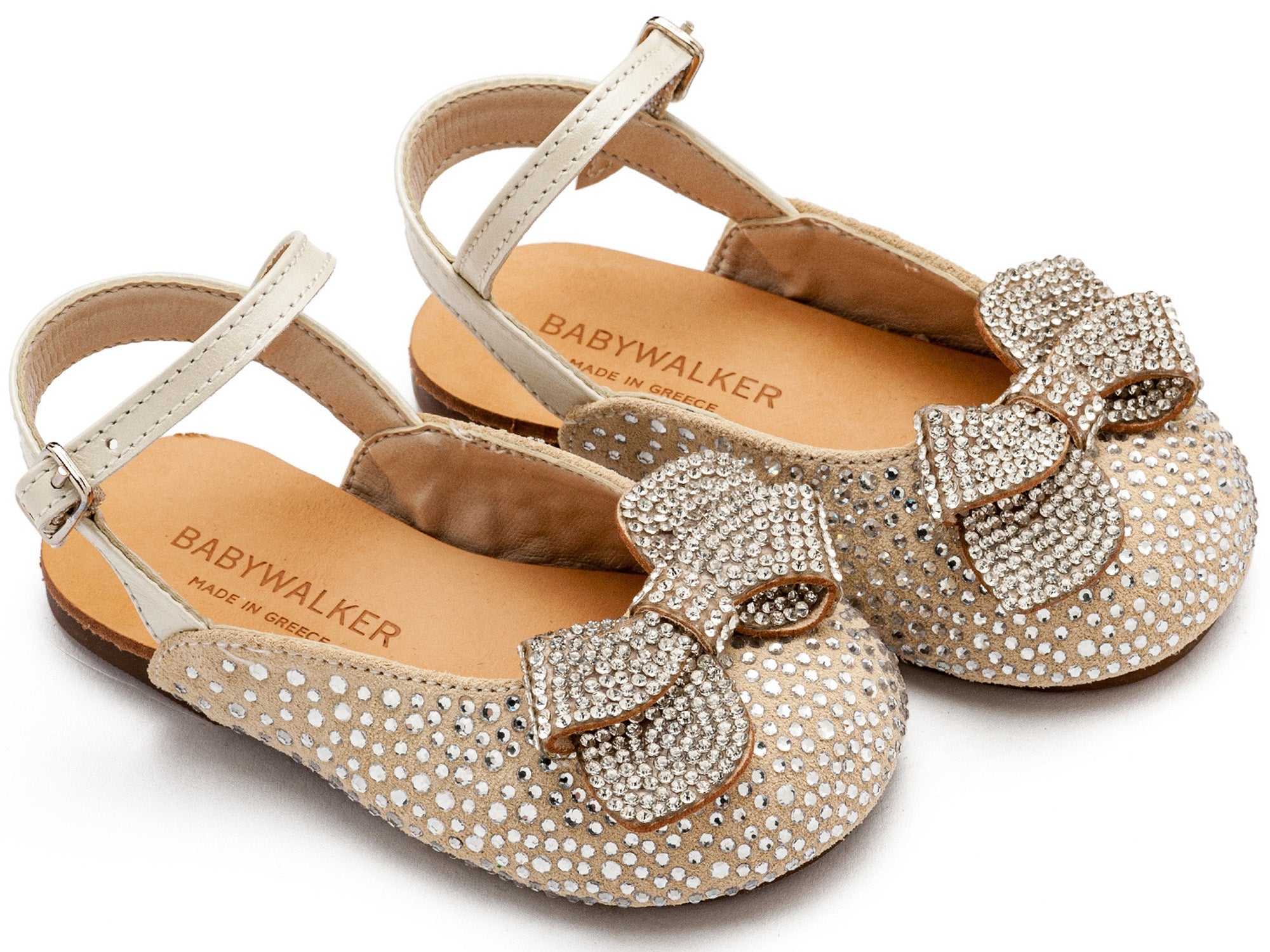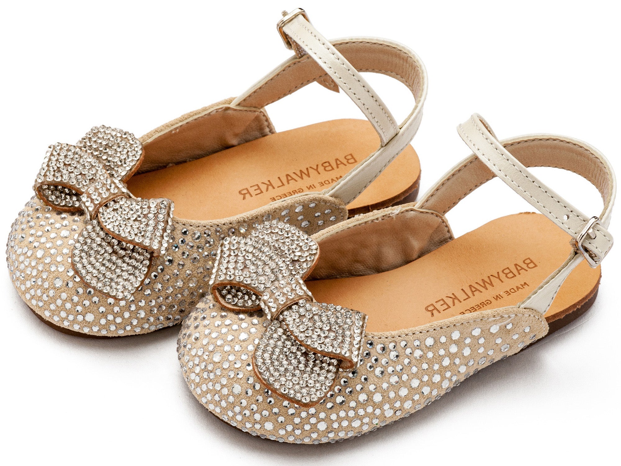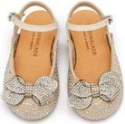 Δερμάτινο Σαμπό Διακοσμημένο Ολόγυρα με Στρας και Φιόγκο σε Εκρού Χρώμα