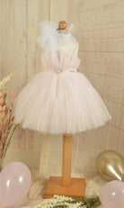 A princess dress in pink shades, with tulle layers, a pink sash with a decorative rhinestone heart, that will enchant every little girl and godmother!