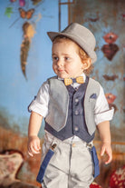 Carousel baptism set for boys with a modern yet classic style, made of high quality materials. Ideal for a look that will steal the show!