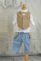 Carousel baptism set for boys with a modern yet classic style, made of high quality materials. Ideal for a look that will steal the show!