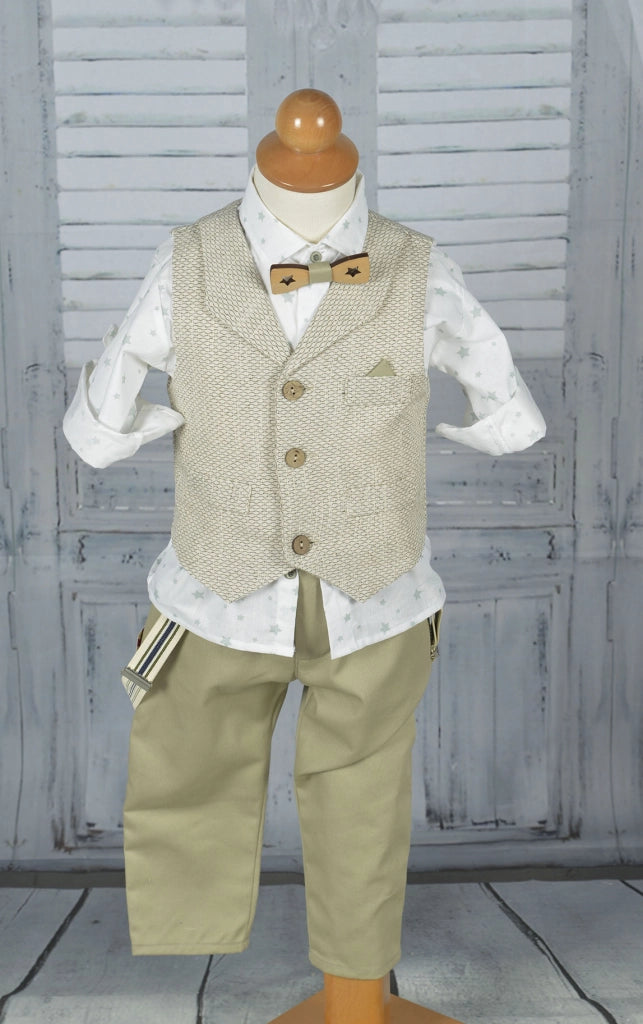 Carousel baptism set for boys with a modern yet classic style, made of high quality materials. Ideal for a look that will steal the show!