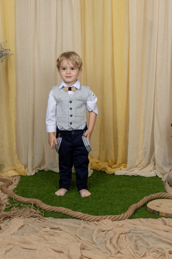 Carousel baptism set for boys with a modern yet classic style, made of high quality materials. Ideal for a look that will steal the show!