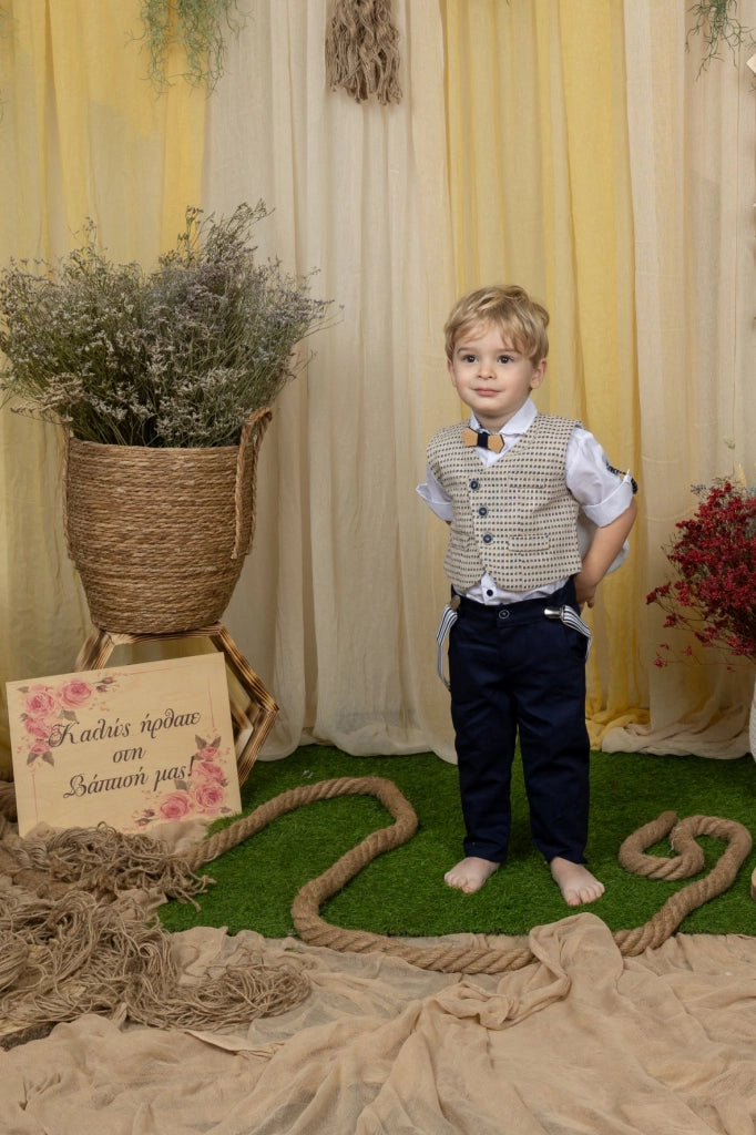 Carousel baptism set for boys with a modern yet classic style, made of high quality materials. Ideal for a look that will steal the show!
