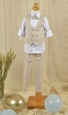 Christening Gown for Boy with Vest in Beige