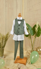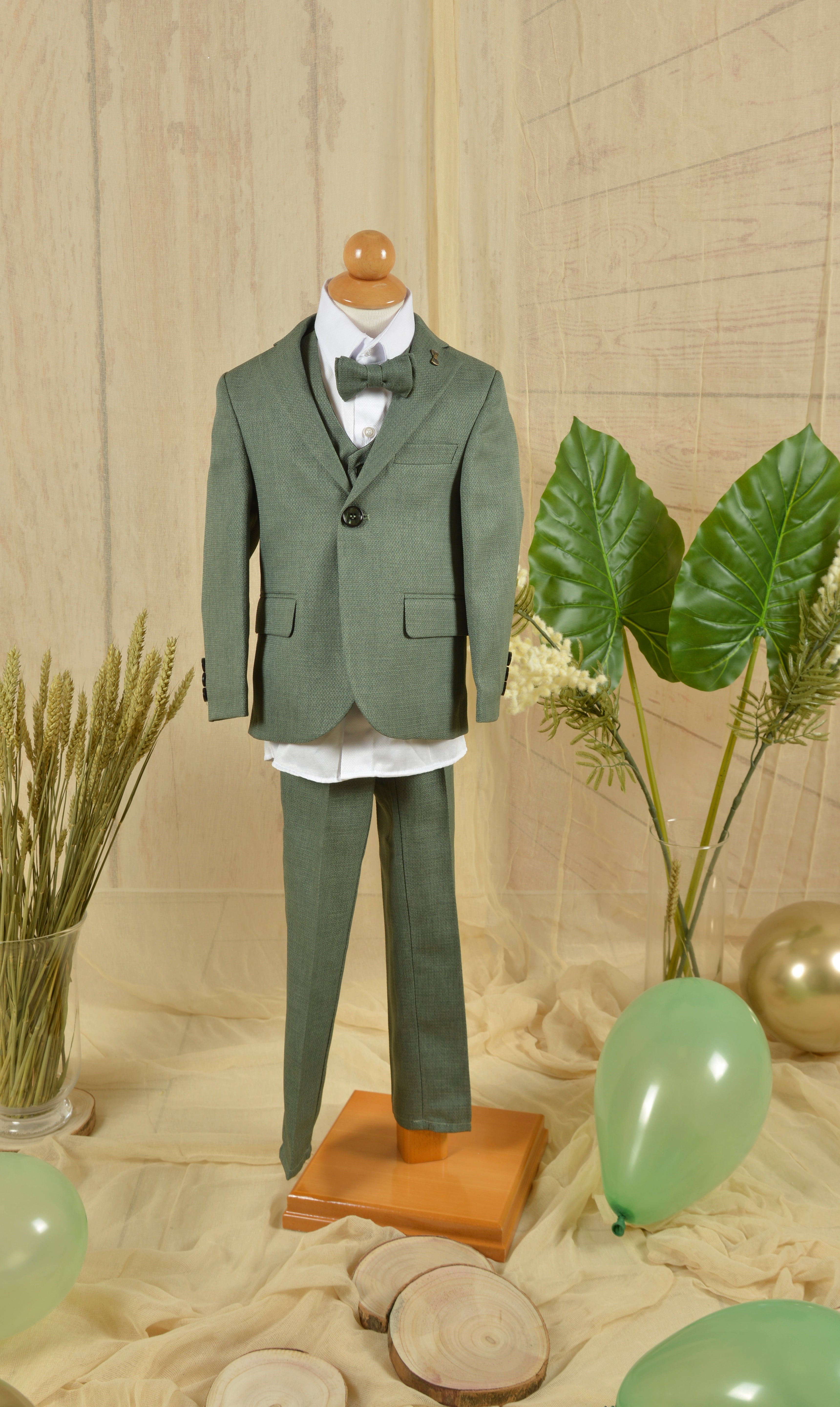 A stylish and adorable outfit for your little one in dark green with a matching bow tie and hat. The most stylish christening outfit for a boy!