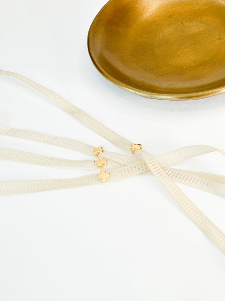 Martyrdom bracelet with ecru cord and cross. The photos have been edited, the colors may differ slightly in reality.