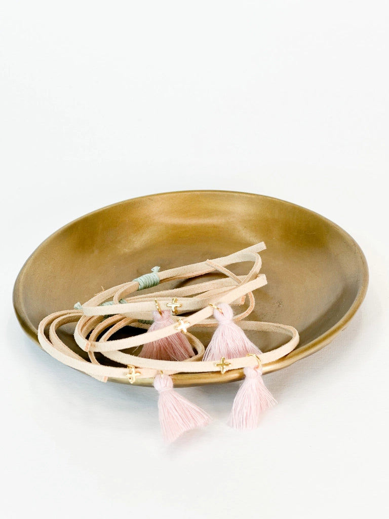 Martyrdom bracelet with beige suede cord, cross, rotten apple tassel and bright blue binding. The photos have been edited, the colors may differ slightly in reality.