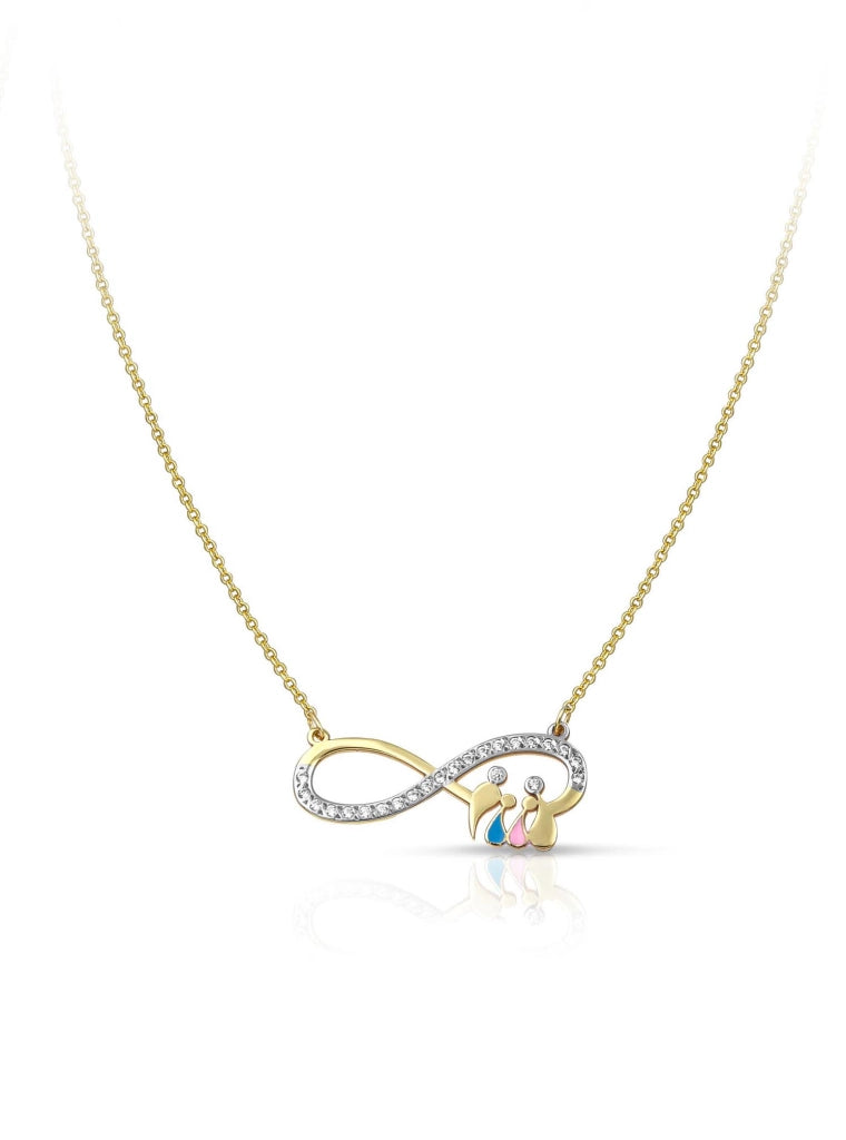 Women's Gold Infinity Necklace - Family with Zircon stones. Available in K9 and K14.