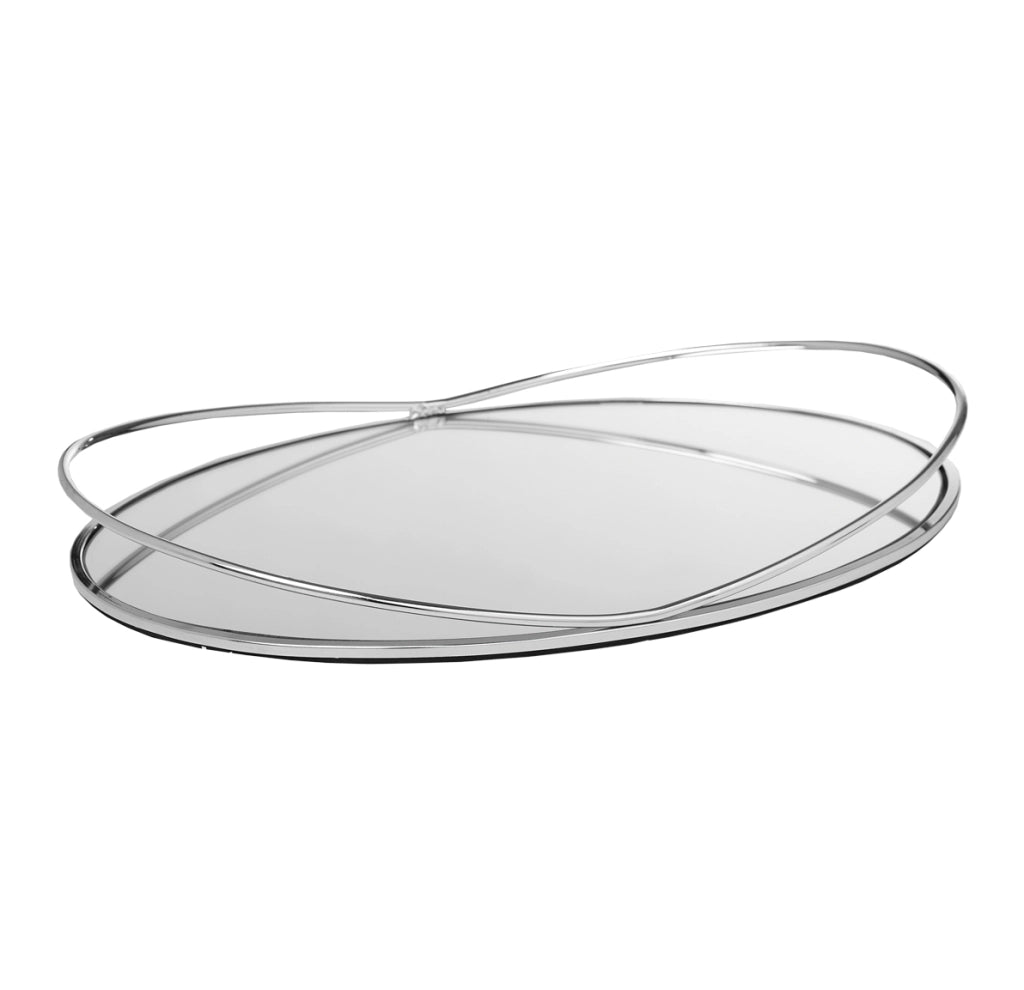 Silver Sleek Handmade Wedding Tray MASCHIO FEMMINA Silver with Mirror Base
