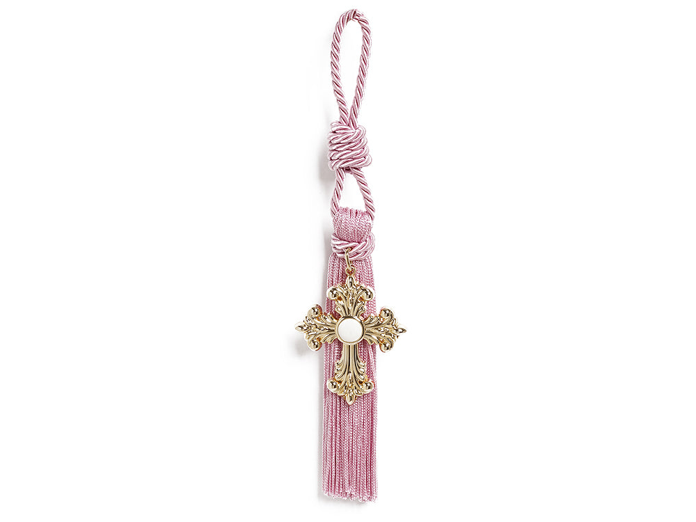 Φυλαχτό κρεμαστό με σταυρό ροζ