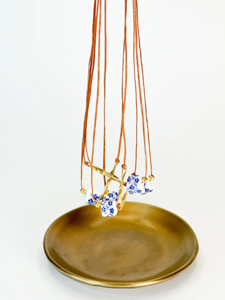 Martyrdom necklace with waxed cord, cross and porcelain floral bead. The photos have been edited, the colors may differ slightly in reality.
