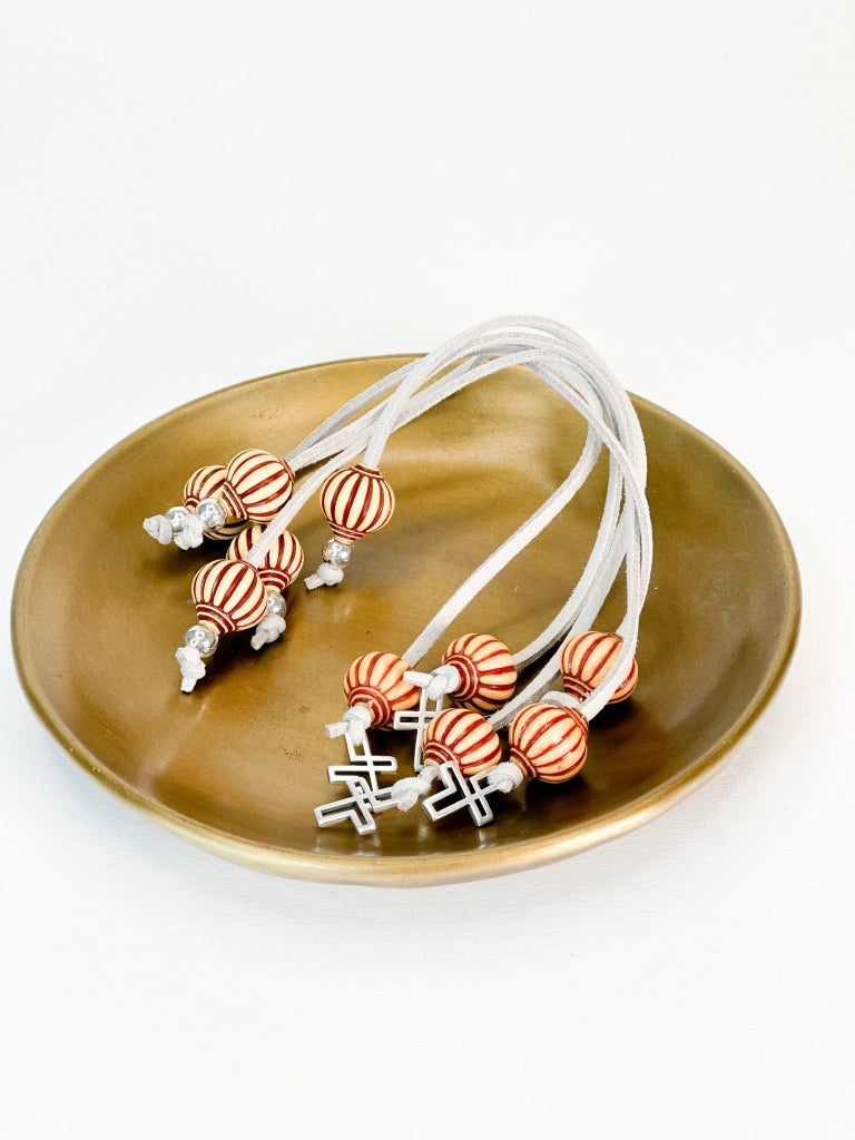 Martyrdom rosary with gray suede cord, two-tone beads and cross. The photos have been edited, the colors may differ slightly in reality.