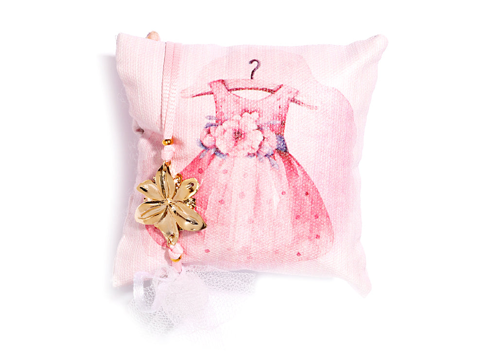 Μπομπονιέρα μαξιλάρι με θέμα φόρεμα.
