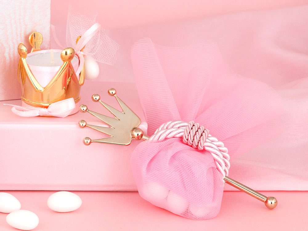 Μπομπονιέρα πουγκί τούλινο με ραβδί κορώνα