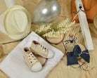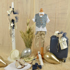 A complete baptism set for your little one with a star theme in a combination of shades of blue and beige.