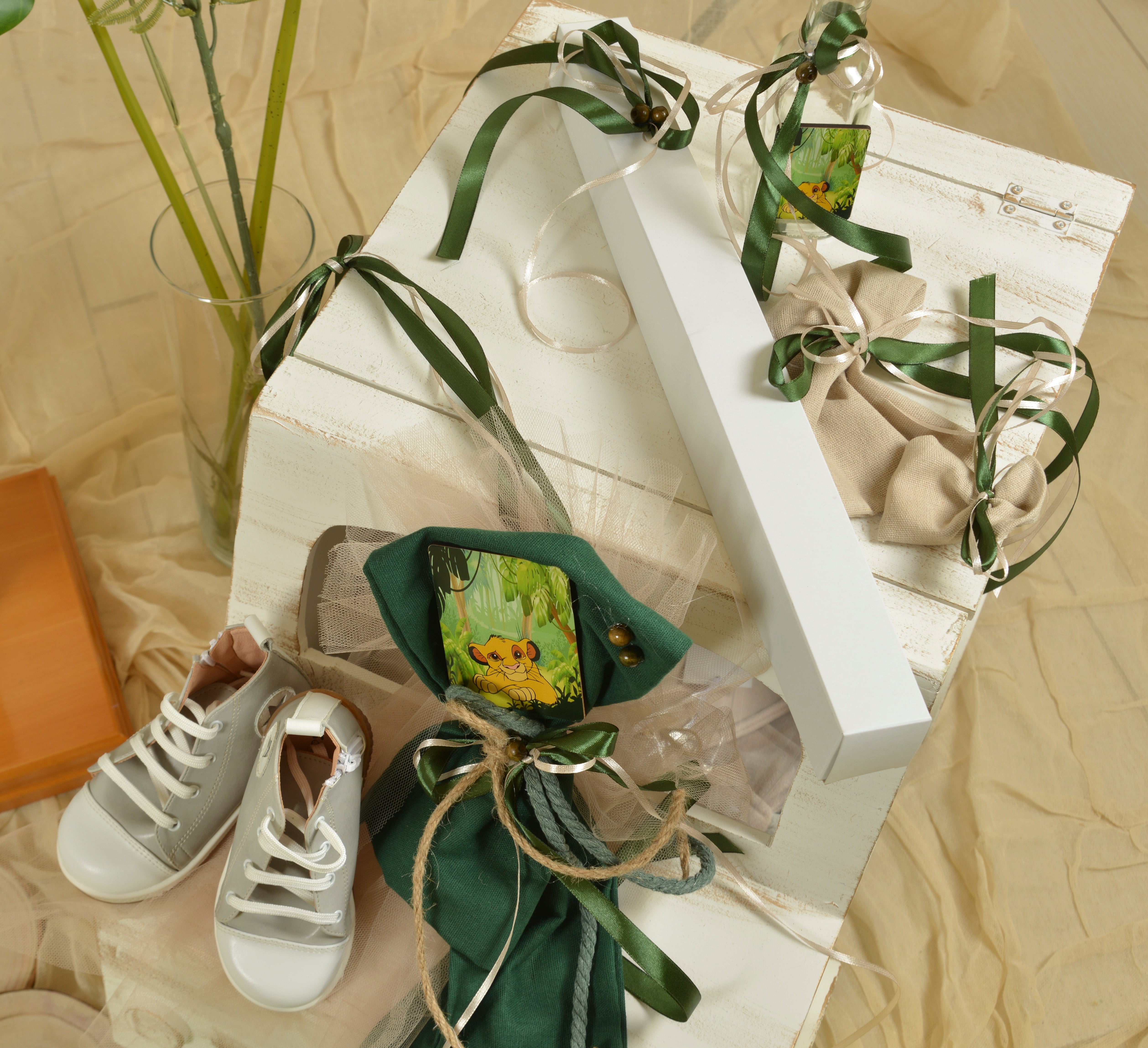A complete baptism package for your little one with a Lion King theme in bright green shades.
