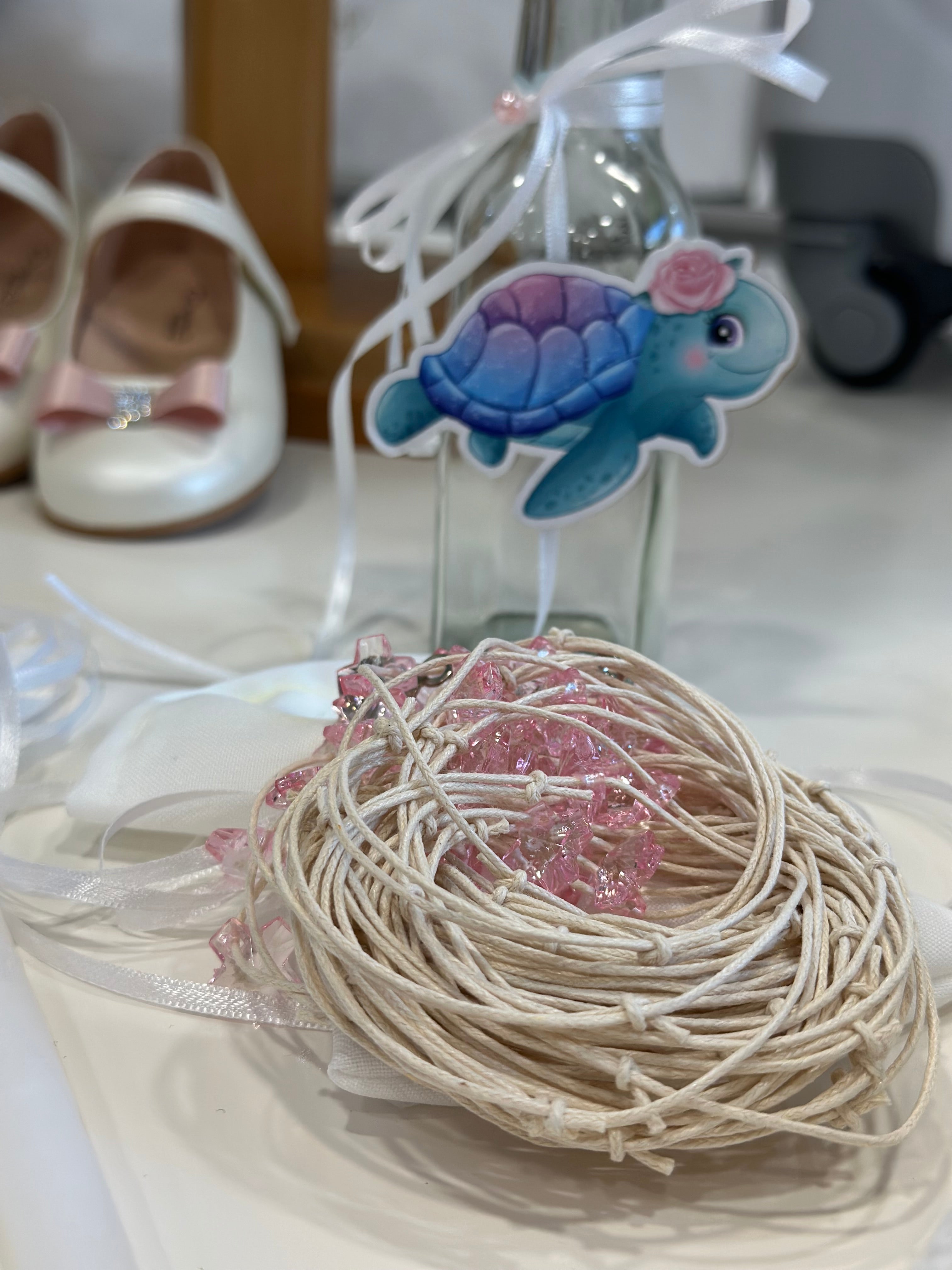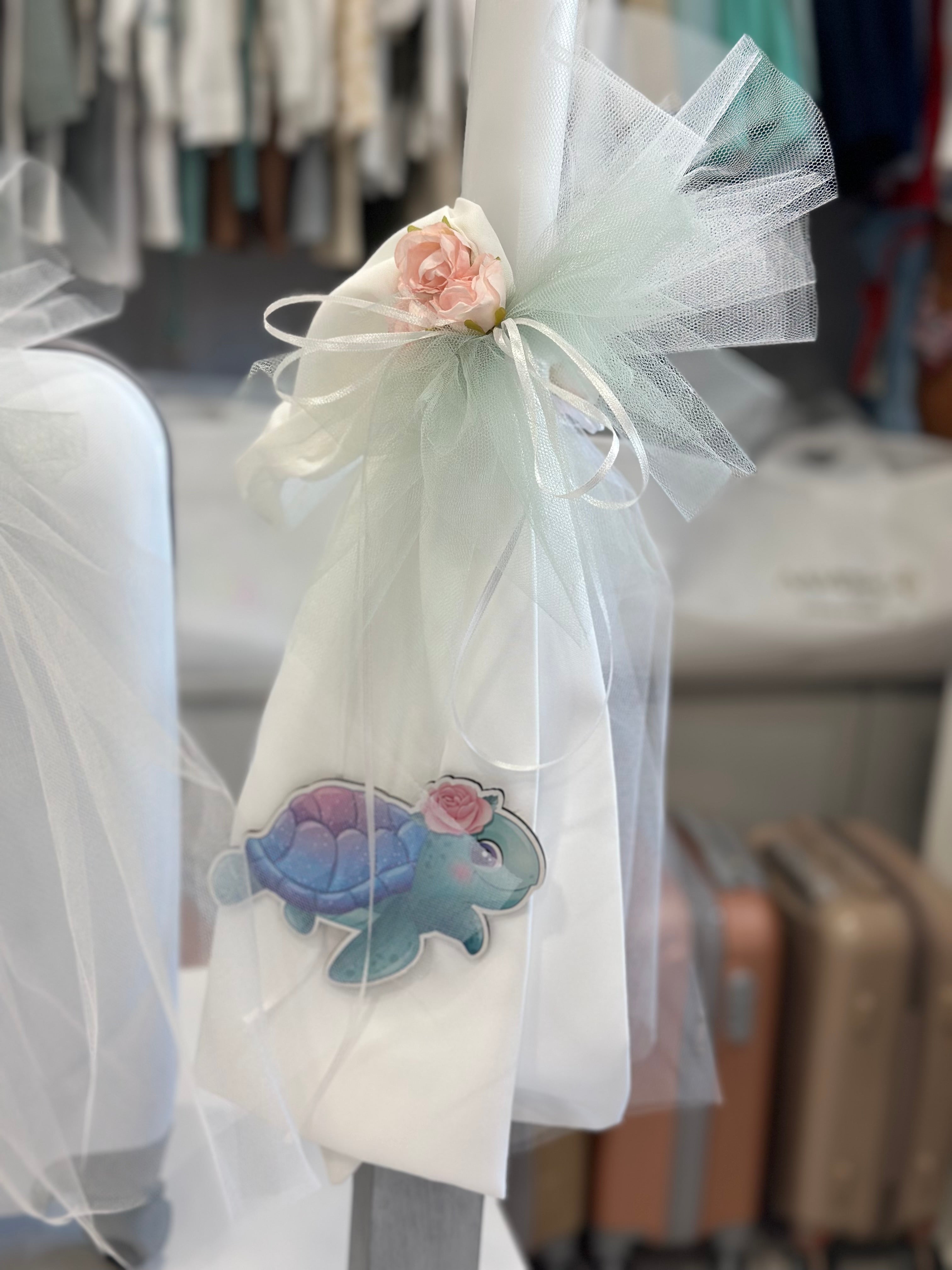 A classy, ​​complete baptism package for your little one, in salmon and white shades, with a Cinderella theme.