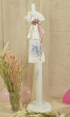 A fairytale, handmade mermaid-themed baptism candle, in a white - satin finish.