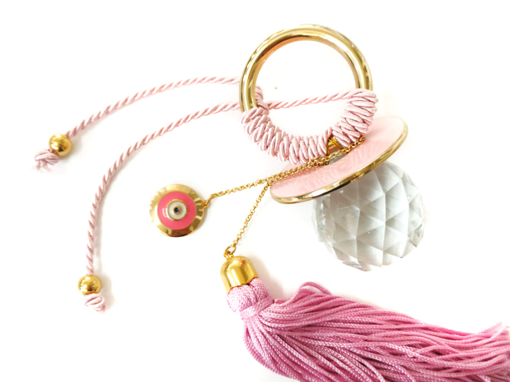 Διακοσμητική πιπίλα ροζ με κρύσταλλο