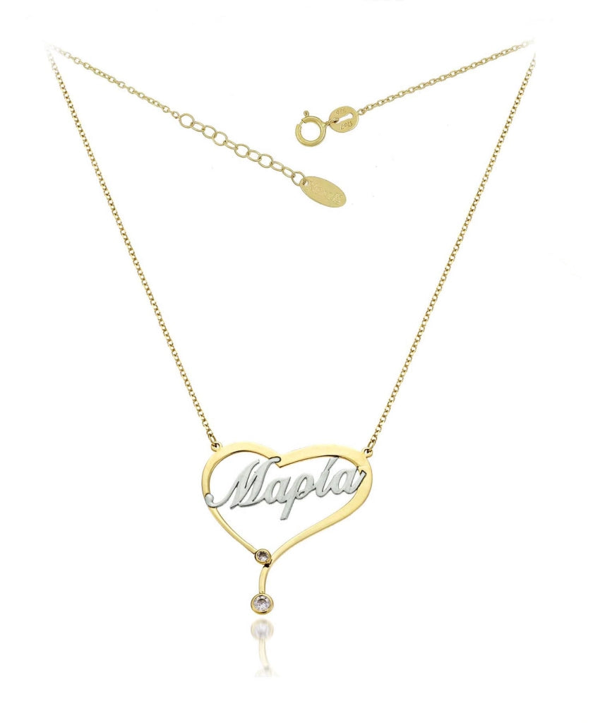 Women's Gold Name Necklace with Zircon Stones. Available in K9 and K14.
