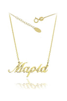 Women's Gold Name Necklace with Zircon Stones. Available in K9 and K14.