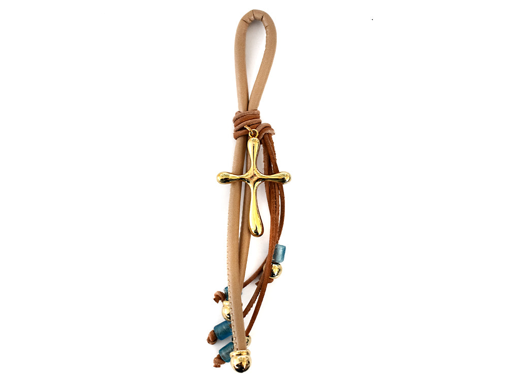 Μπομπονιέρα με δερμάτινο κορδόνι και σταυρό