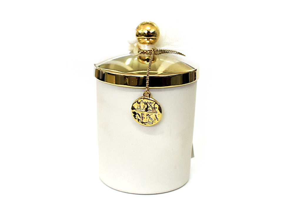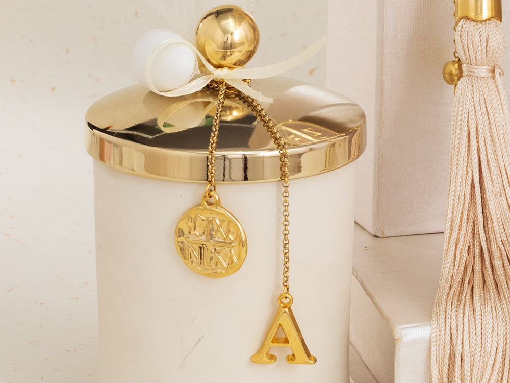 Μπομπονιέρα κερί εκρού με Κωνσταντινάτο και μονόγραμμα