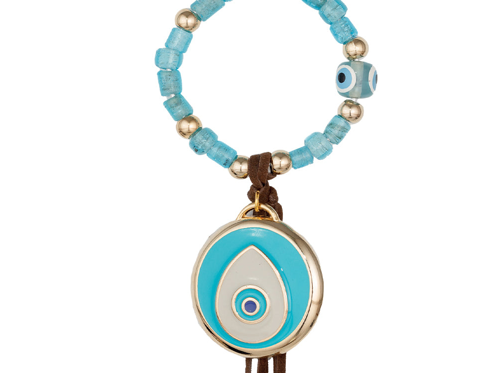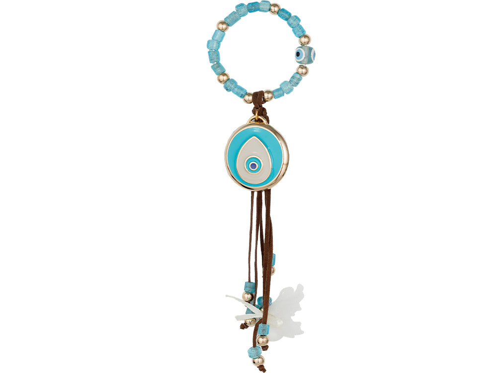 Μπομπονιέρα με μάτι και τιρκουάζ χάντρες.