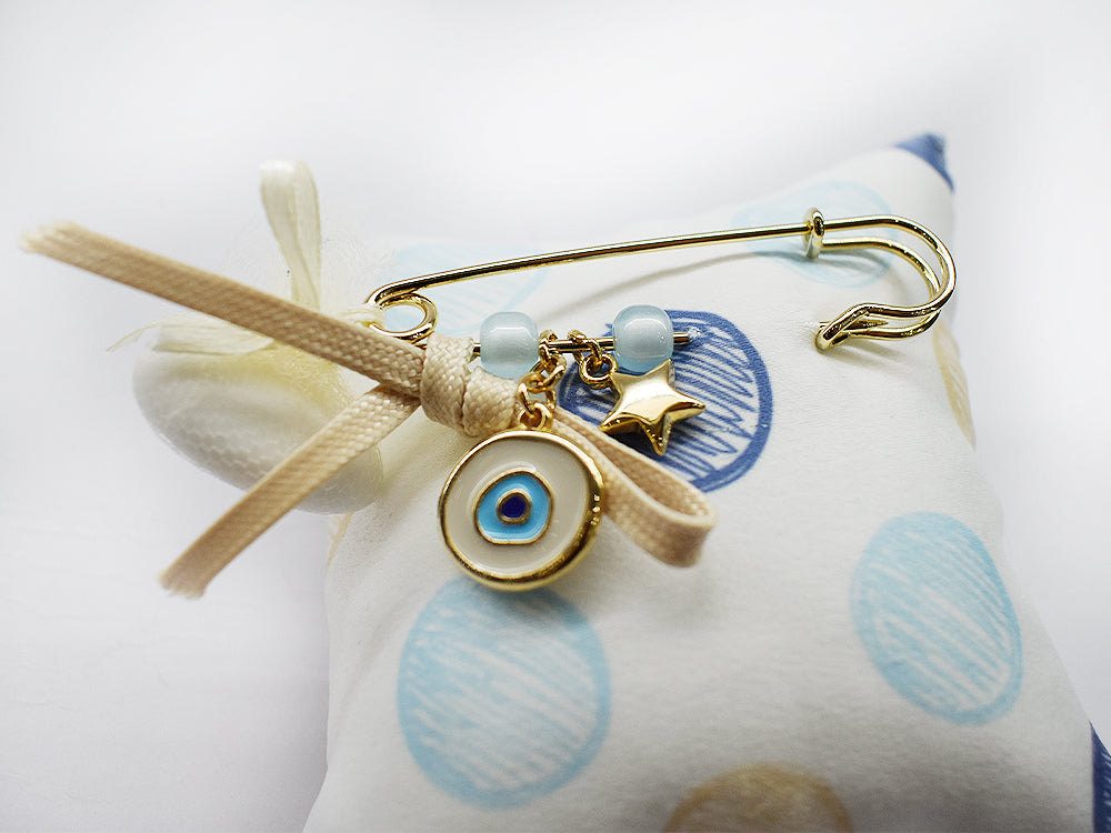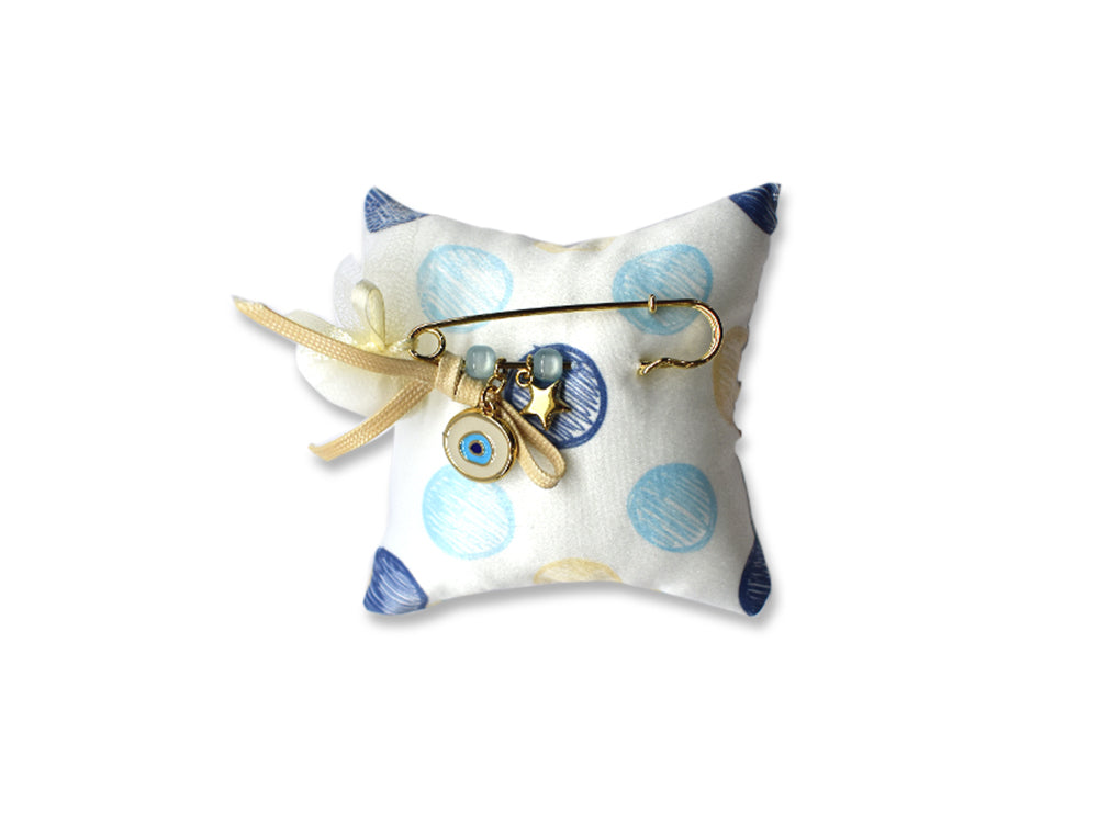 Μπομπονιέρα μαξιλάρι με παραμάνα και μάτι.
