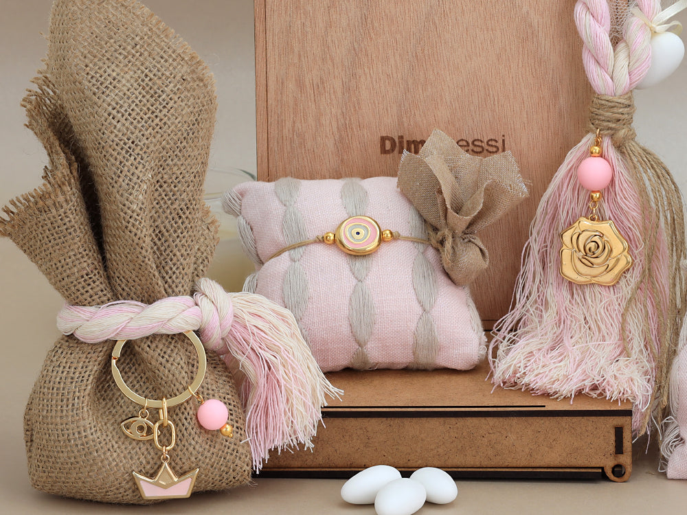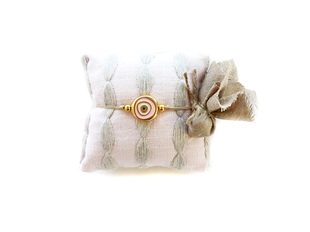 Μπομπονιέραμαξιλάρι με βραχιόλι ματάκι.