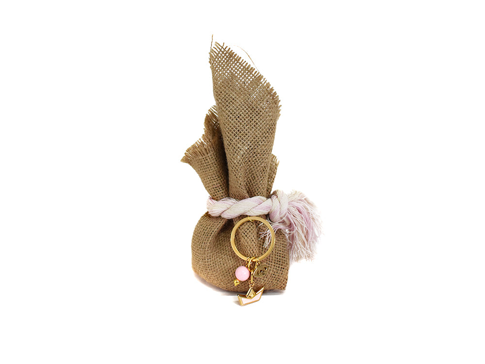 Μπομπονιέρα πουγκί με μπρελόκ και καραβάκι