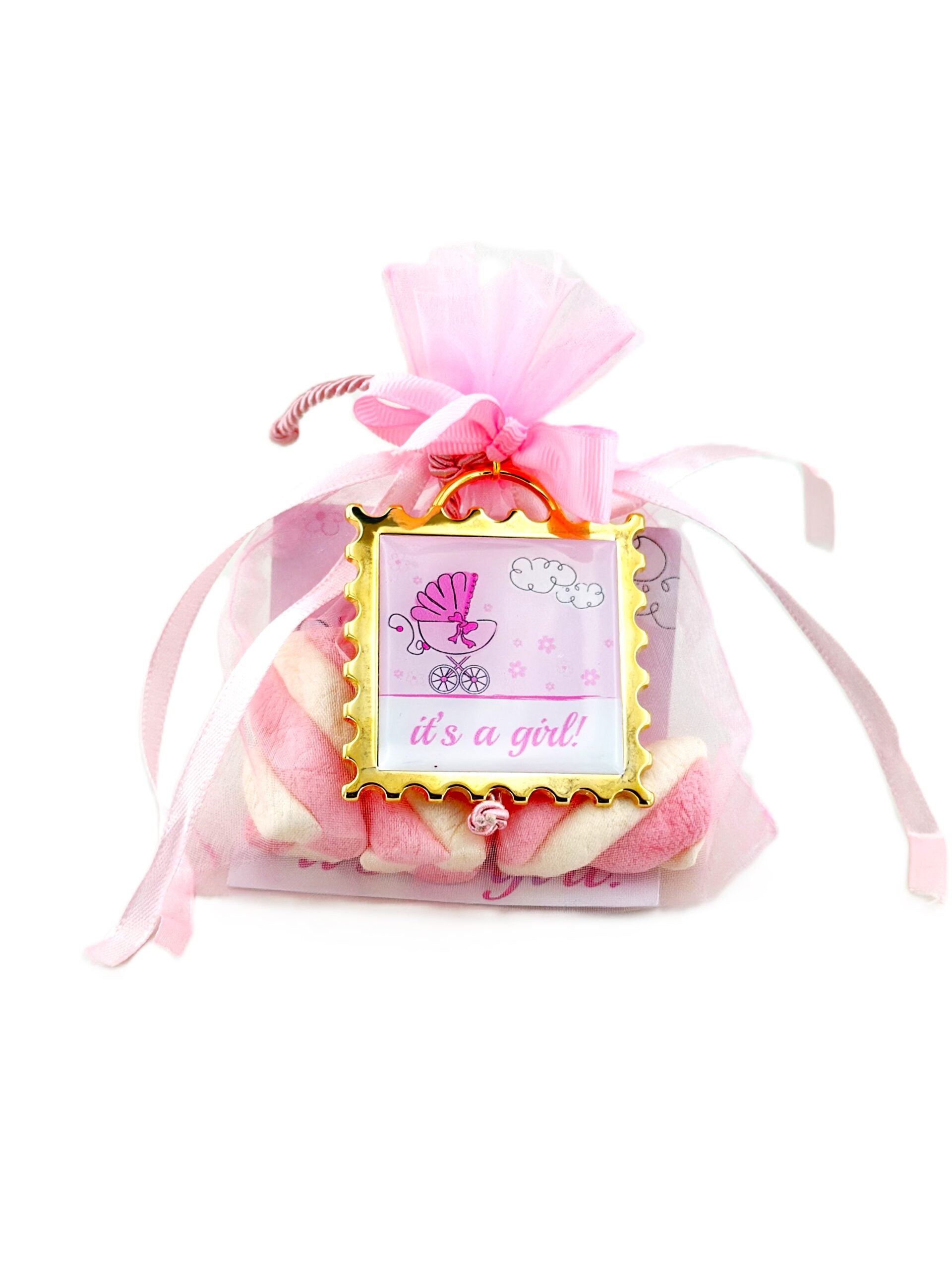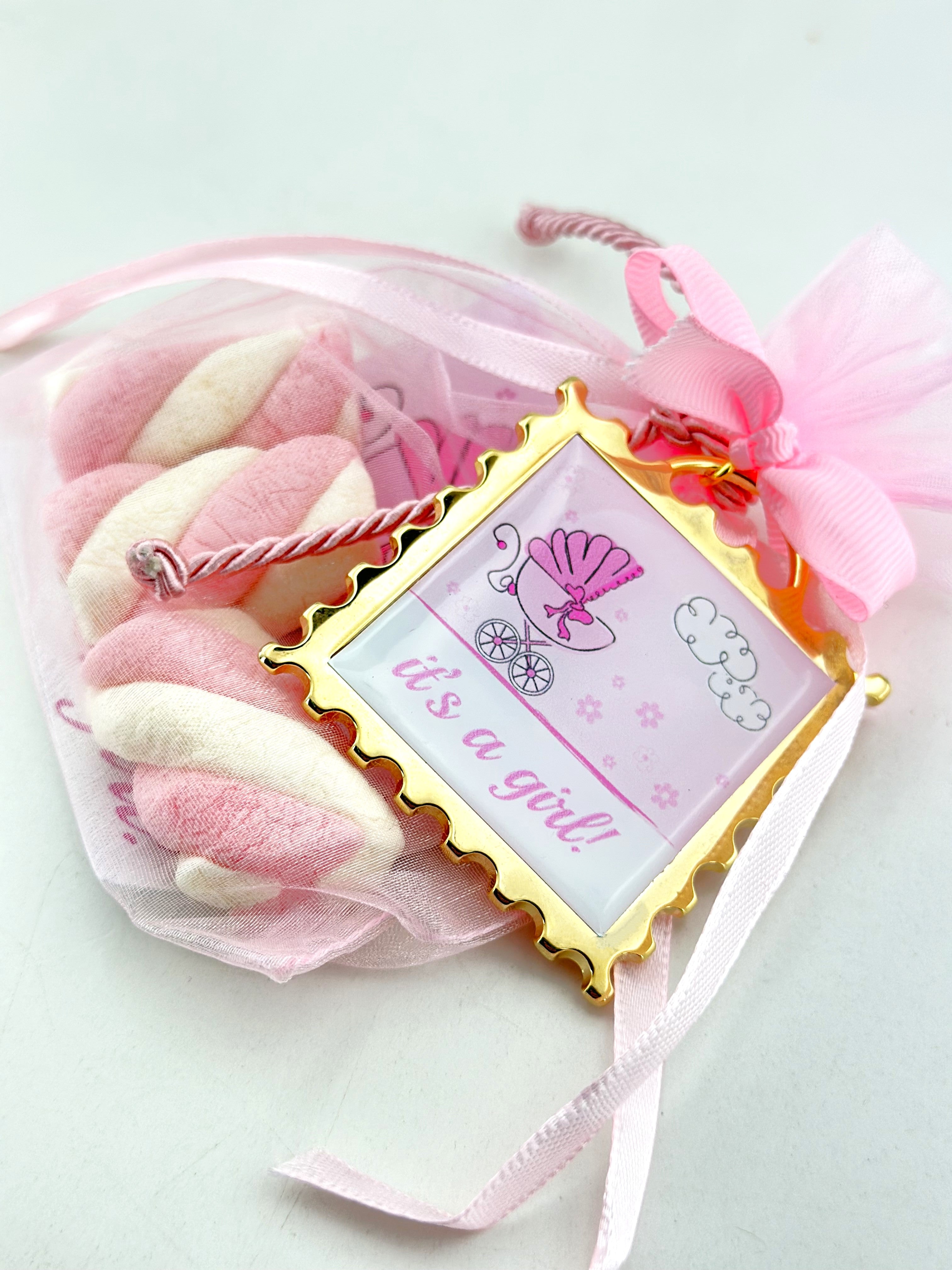 Μπομπονιέρα ροζ γραμματόσημο.