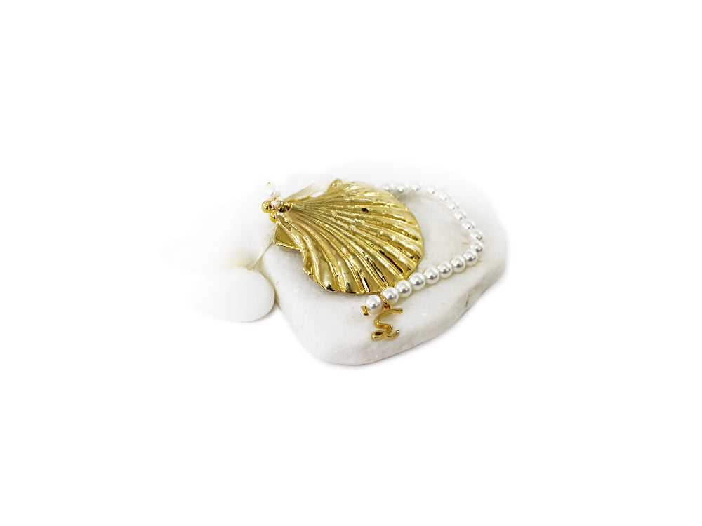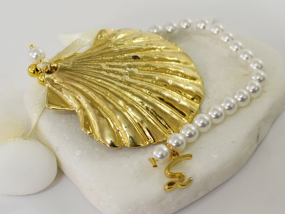 Μπομπονιέραβότσαλο με κοχύλι και μονόγραμμα.