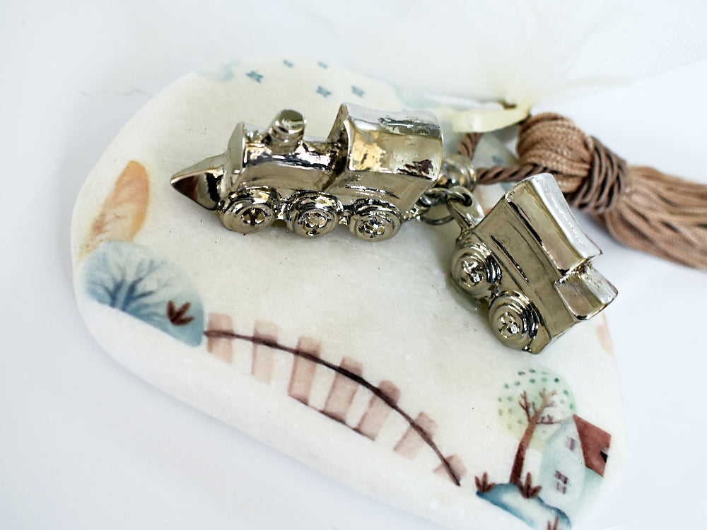 Μπομπονιέρα βότσαλο με τρενάκι.